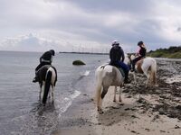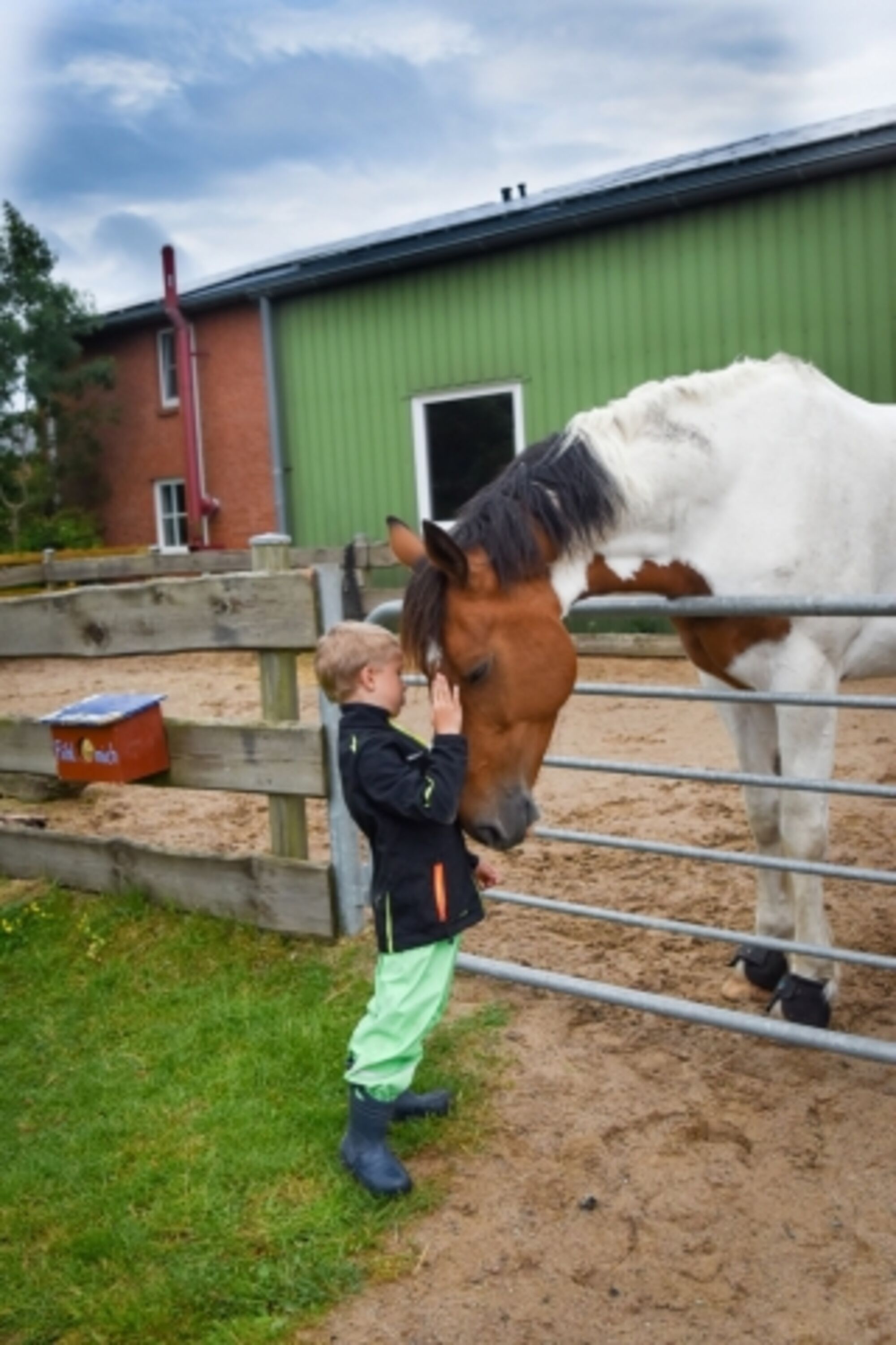 Bleiben Sie auf dieser Straße bis zur nächsten T-Kreuzung. Dort biegen Sie links ab. Sie fahren über einen kleinen Hügel, von dem aus Sie die Ostsee und Presen bereits sehen können. Im Dorf folgen Sie der Straße und halten Sie sich dabei rechts, bis Sie auf ein weißes Haus zu fahren. Dort steht ein schwarzes Pferd im Garten. Links davon befindet sich unsere Hofeinfahrt. Parken Sie vorne auf dem Hof und melden Sich bei uns im Bauernhaus an.