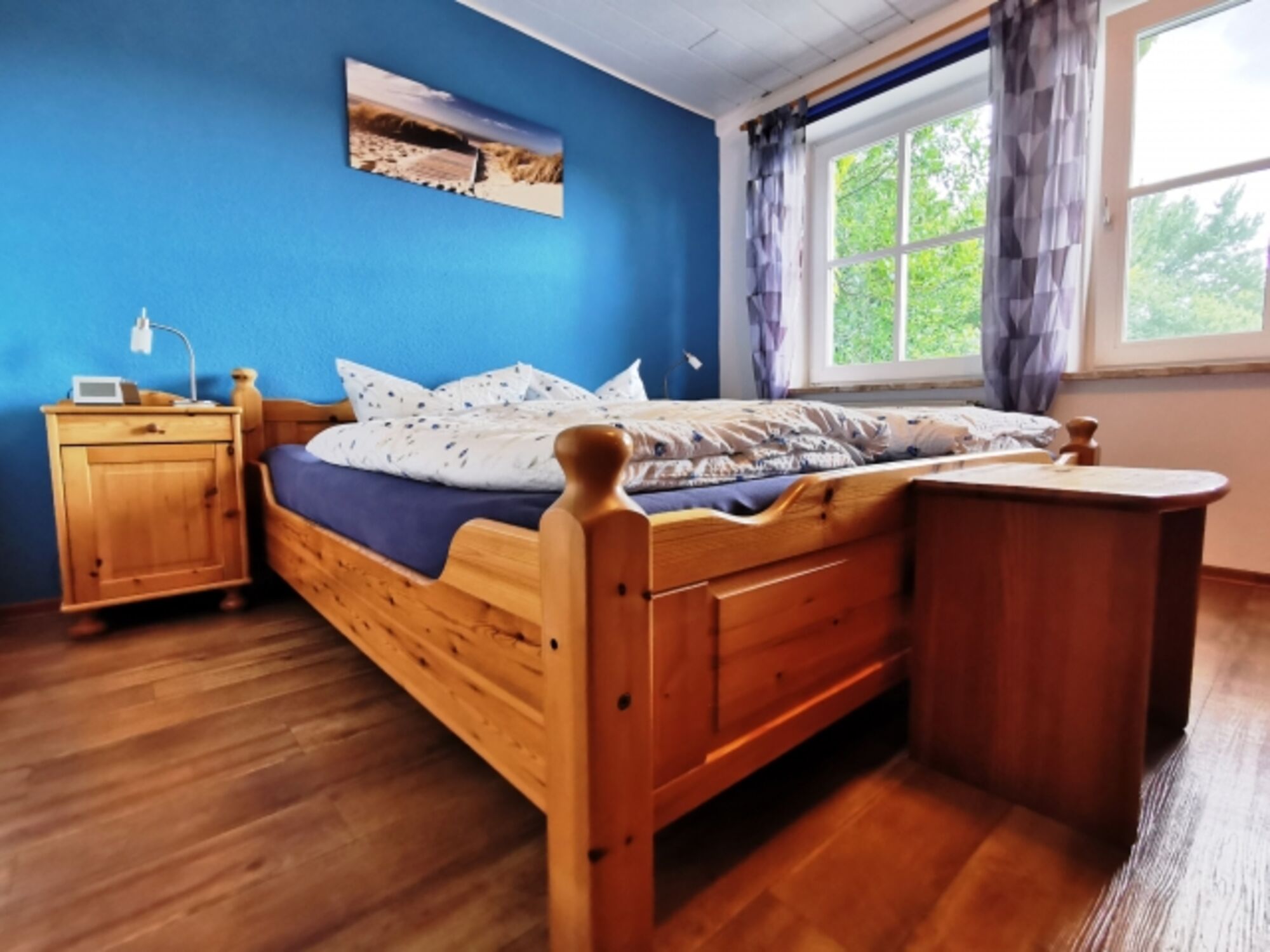 Doppelbett 1,80 x 2,00m, Wecker, Spiegel, Leselampe am Bett, Fliegengitter