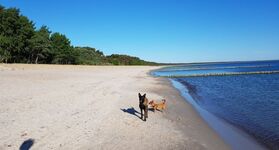 Da gibt es auf der einen Seite des neu erbauten Yachthafens die Kreidefelsen und den Steinstrand und auf der anderen den ca. 12 km langen, breiten, feinsandigen und leicht abfallenden Badestrand. Gäste mit oder ohne Kinder fühlen sich hier richtig wohl, aber auch Hundebesitzer kommen hier voll auf ihre Kosten. Besonders entspannend für Hundebesitzer ist natürlich die Vor- und Nachsaison, da sie während dieser Zeit Spaziergänge über den kompletten Strand unternehmen können. In der Hauptsaison ist das nur morgens und abends (außerhalb der Hauptbadezeit) möglich aber das ist kein Problem, da es für Hundebesitzer ja einen speziellen Hundestrand gibt, oder sie benutzen den Naturstrand, wo es keine Einschränkungen gibt.