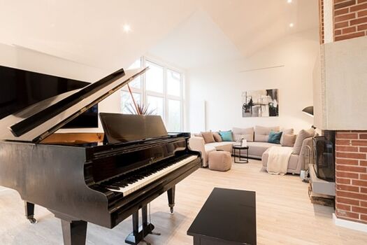 Dieses traumhafte Ferienhaus mit einem offenen Kamin, einer Sauna, einem Whirlpool und einem Flügel lässt keine Wünsche offen.