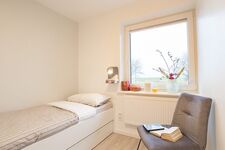 1 Schlafraum (OG) mit 1 ausziehbarem Einzelbett (90 x 200 cm)