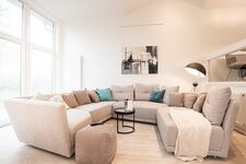 Das exklusive Feriendomizil mit seiner stilvollen, modernen Einrichtung verfügt auf 4 Halbgeschossen über 1 hochwertig ausgestattete Küche, 1 kombinierten Wohn-/Essraum, 4 Schlafräume, 2 Bäder en suite, 1 Vollbad mit Spa-Bereich sowie einen ca. 2000 m² großen, weitläufigen Garten, wovon ca. 1000 m² komplett eingezäunt sind.