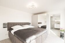 1 Schlafzimmer (OG) mit 1 Boxspringbett (200 x 200 cm) und LCD/LED Flachbildschirm