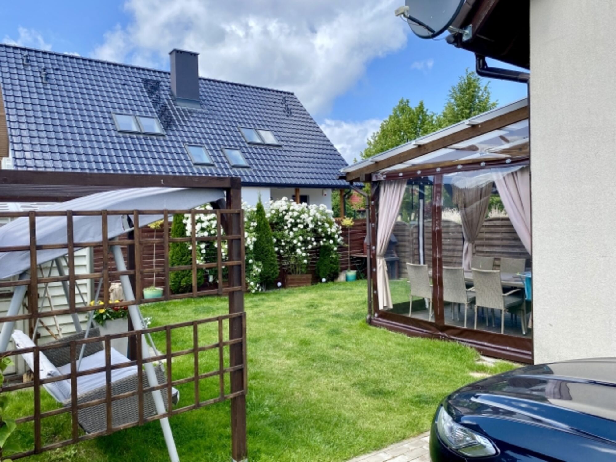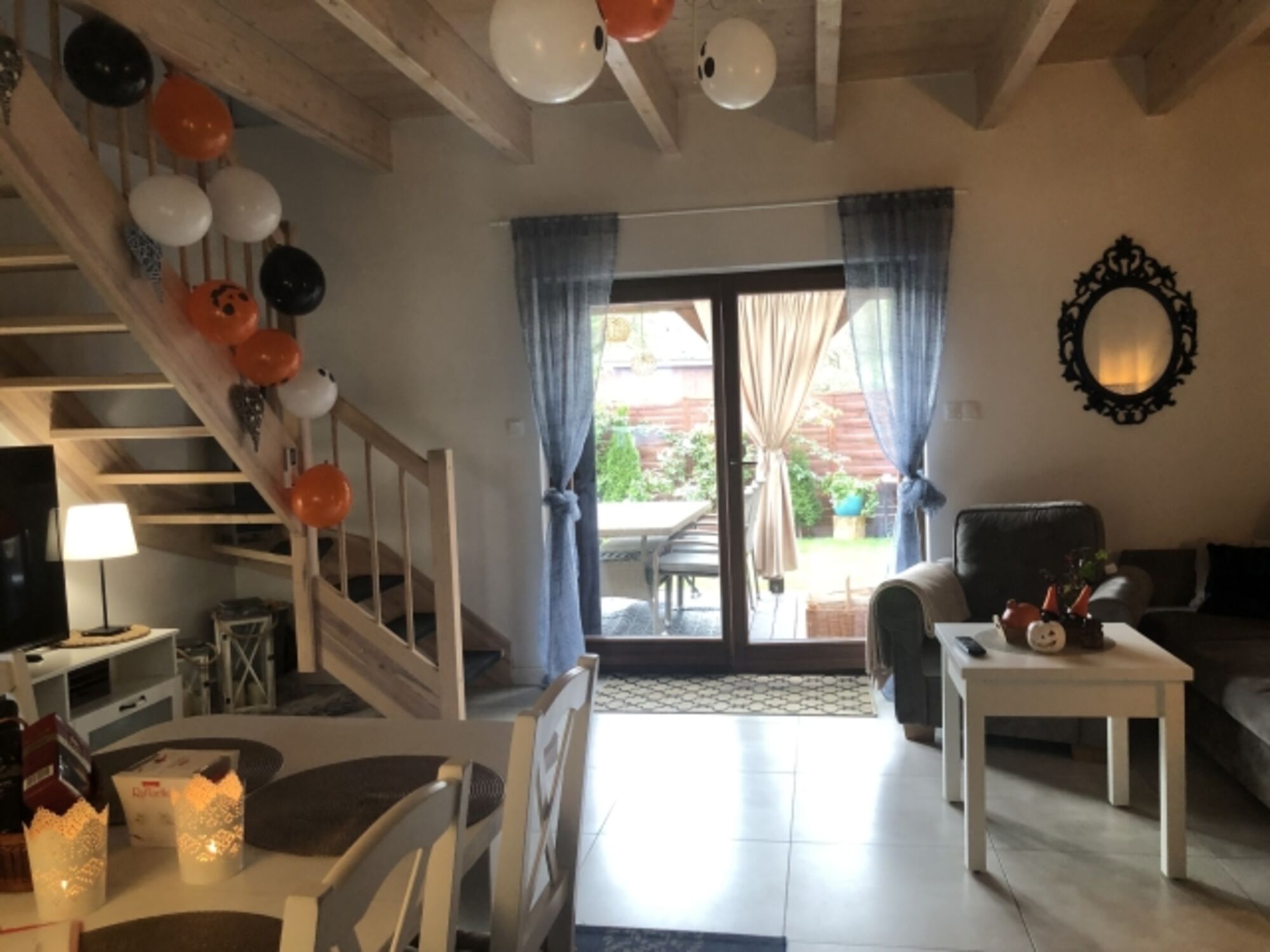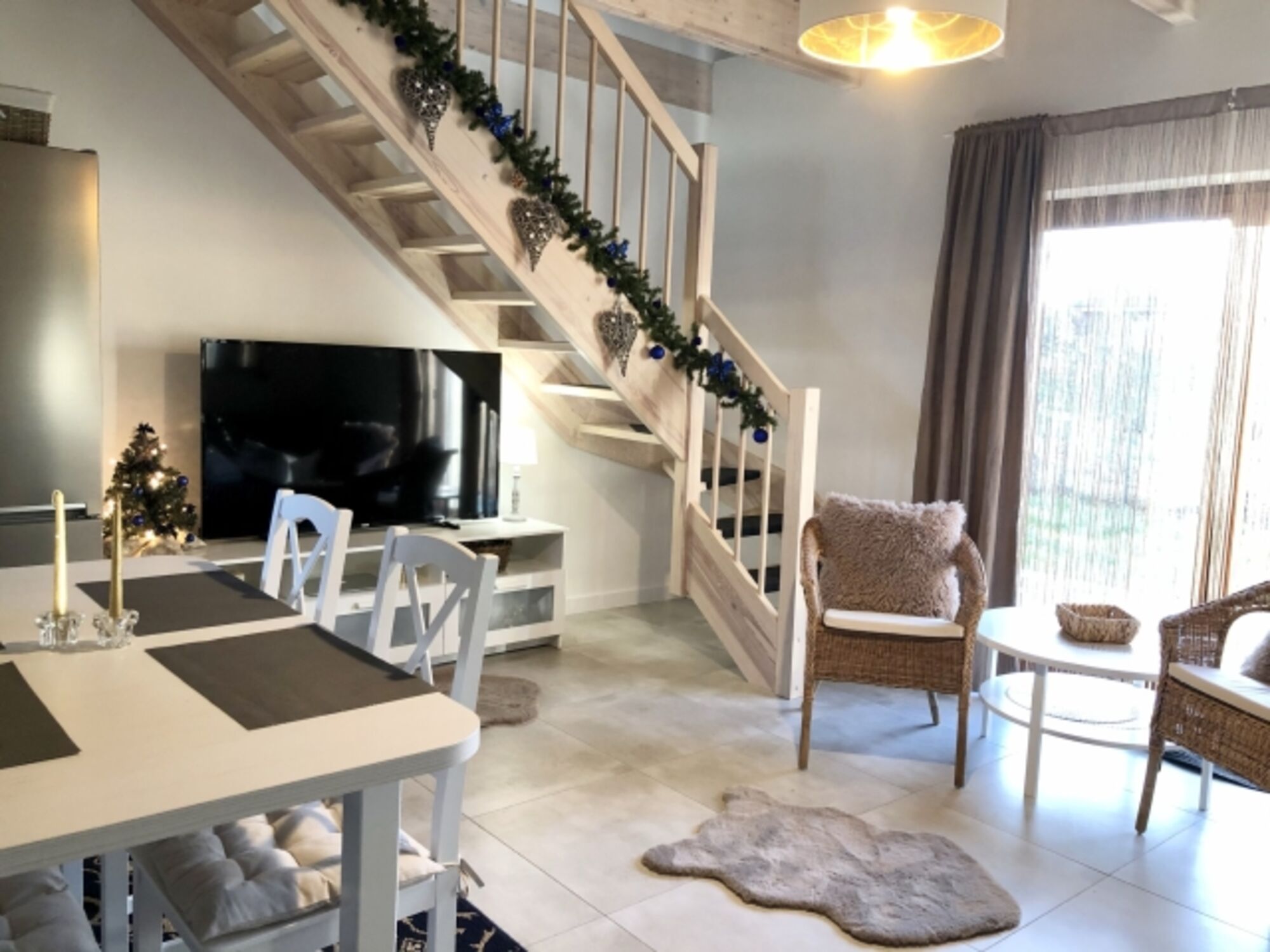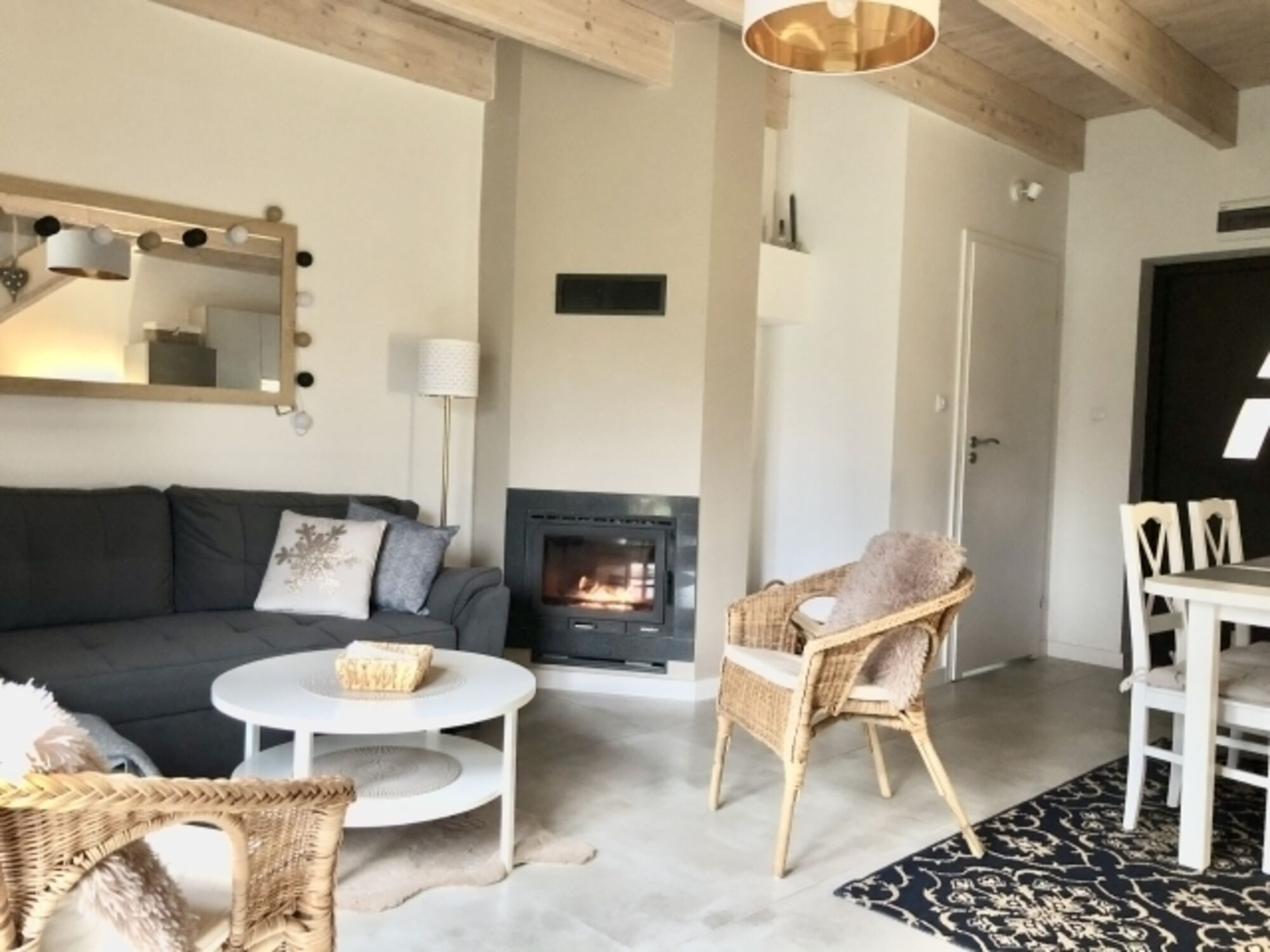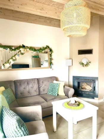 Das Haus verfügt über ein Wohnzimmer, Kochnische, 2 Schlafzimmer, Badezimmer mit Dusche und ein zusätzliches WC im Obergeschoss, neben dem Schlafzimmer. Das Haus ist sehr gut ausgestattet (TV, Internet, Netflix, deutsche Sender, Spülmaschine, Waschmaschine, Kaffeemaschine, Toaster, Trocknerteller, Gläser, Töpfe, Besteck, Bettwäsche, Handtücher, Toilettenpapier, Kaffee, Tee etc.). Das Haus verfügt über eine Klimaanlage und einen Kamin. Wir liefern Holz für den Kamin Der Kamin ist die Hauptheizung im Haus. Zusätzlich gibt es Infrarotheizungen in den Schlafzimmern und im Badezimmer. Das Badezimmer hat auch. An warmen Tagen können Sie auf der Terrasse entspannen. Sie können zwei Autos parken .Den Gästen stehen zur Verfügung: Gartenmöbel, Liegestühle, 3 Fahrräder, Elektroroller, Bildschirme, Sonnenschirm.