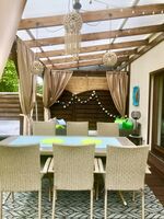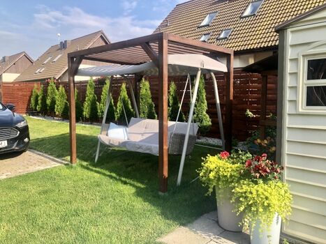 Liegewiese, Strandkorb, Gartenmöbel, Kohlegrill, Überdachte Terrasse (mobil)