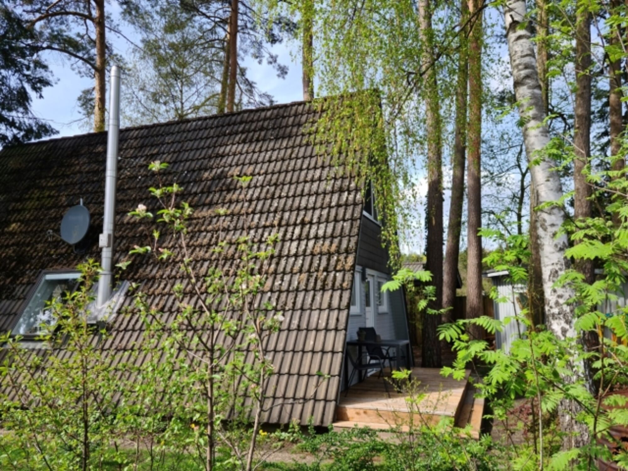 Direkt am Haus befindet sich eine überdachte Holzterrasse – perfekt für jede Jahreszeit. Eine zweite, naturbelassene Terrasse liegt in direkter Nähe zur Küche und lädt zu entspannten Abenden unter freiem Himmel ein.