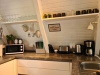 4-Platten Herd, Cerankochfeld, Gefrierschrank, Eierkocher, Mixer, Korkenzieher / Flaschenöffner, Gewürze (Salz, Pfeffer, Zucker), Öl / Essig, Geschirrhandtücher, Mülltüten