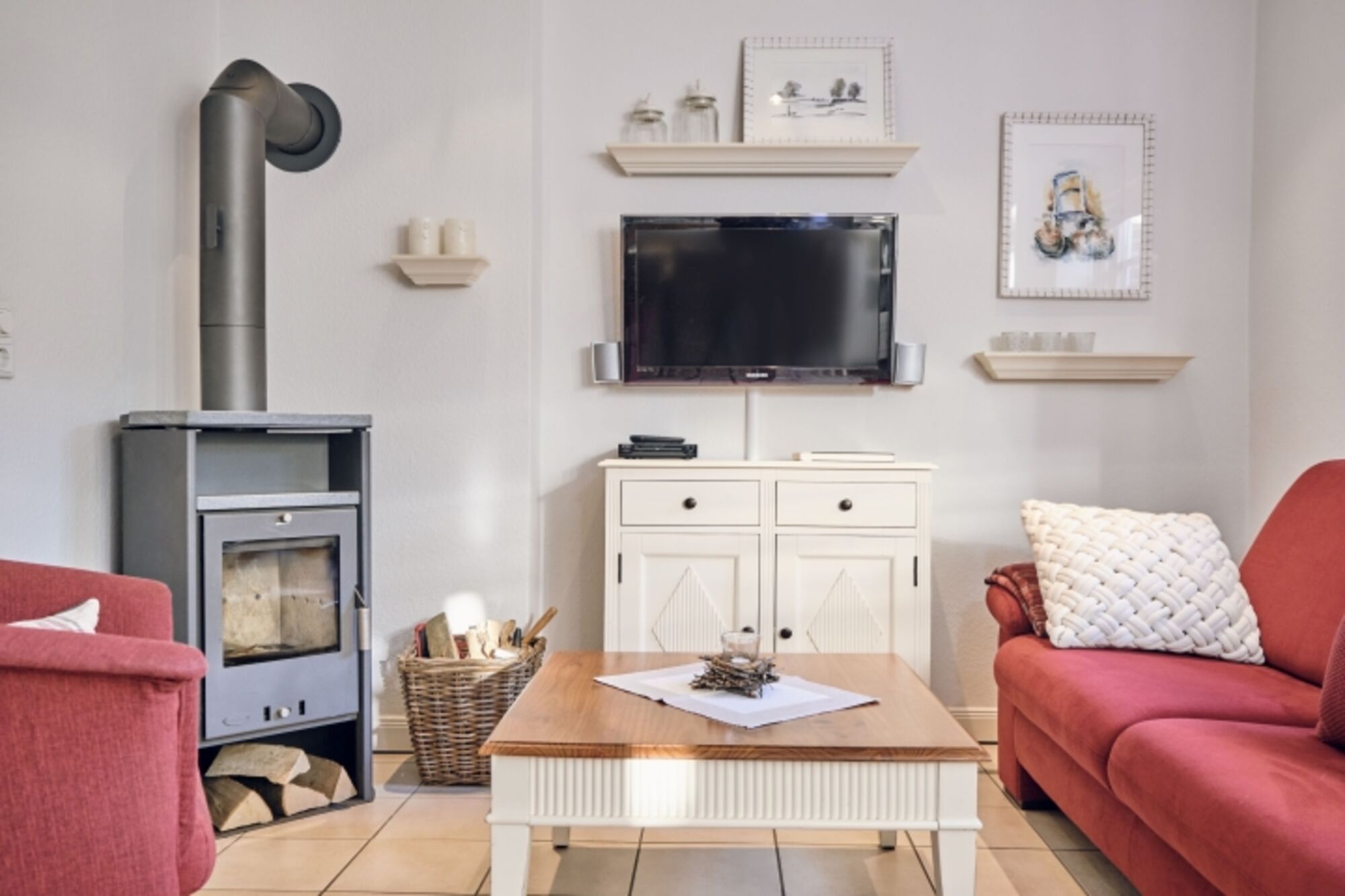 TV-Sat, CD-Player, Kaminofen, 3er-Sofa, Sessel