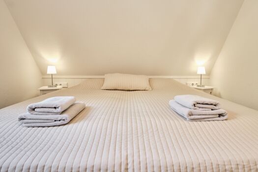 2 Schlafräume im OG: 2 Schlafräume mit je 1 Doppelbett (180 x 200 cm) Doppelbett 1,80 x 2,00m