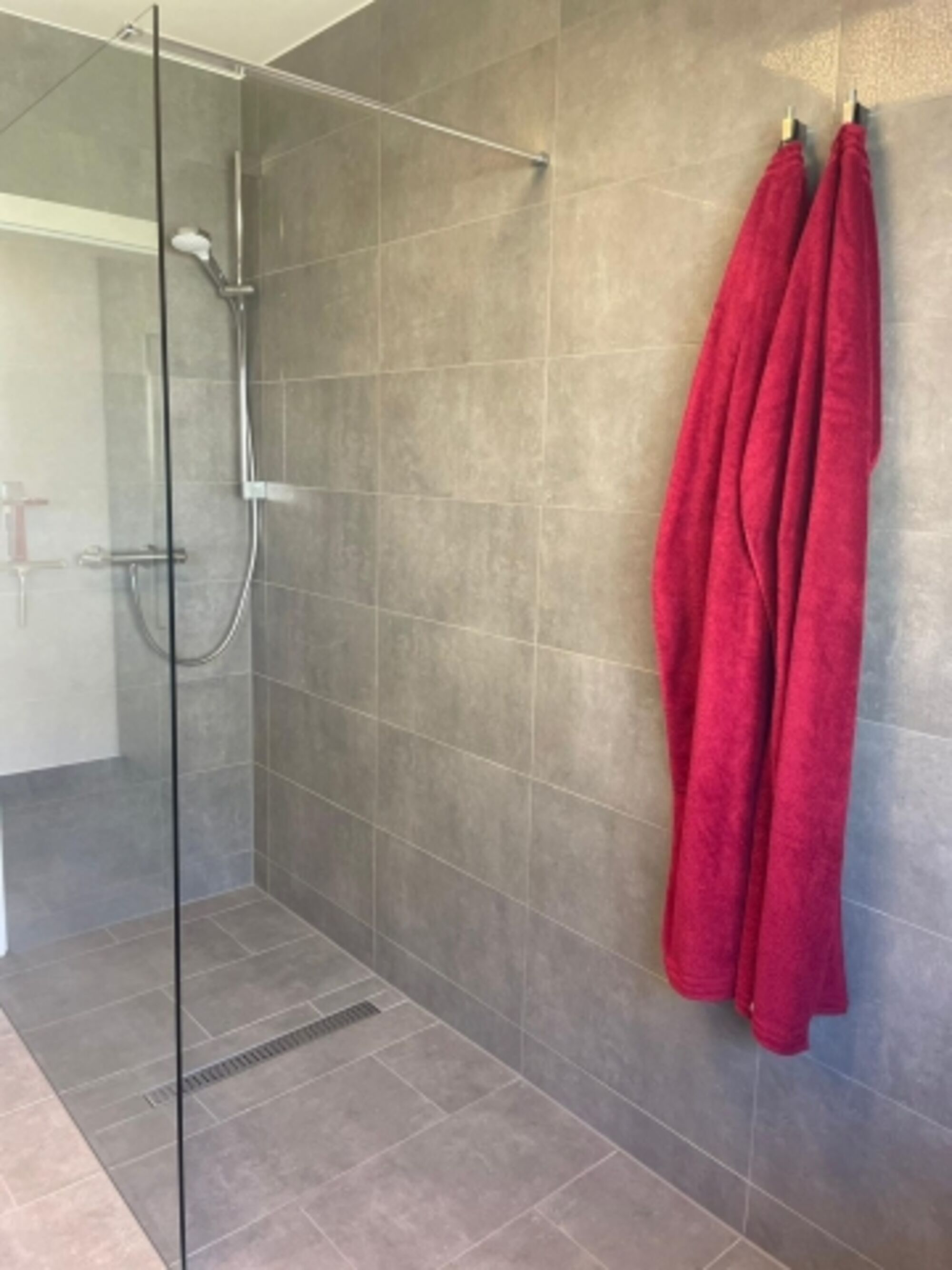 - Das Bad verfügt über eine ebenerdige Dusche. Fön und Kosmetikspiegel sind auch vorhanden.