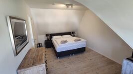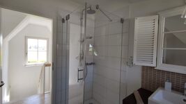 Im Obergeschoss befinden sich zwei Schlafzimmer mit jeweils Doppelbett in Boxspringbauweise mit dem Maß 1,80 x 2,00 m. Die Bilder zeigen die jeweilige Ausstattung mit Kommoden und Sessel (Schlafzimmer 1) bzw. einem großzügigen Massivholzeinbauschrank (Schlafzimmer 2). Beide Schlafzimmer verfügen über TV und sind mit Insektenschutz versehen zum beruhigten Schlaf mit offenem Fenster ;-) Zentral im Obergeschoss (als Trennung zwischen den beiden Schlafzimmern) befindet sich ein sehr modernes Duschbad mit bodentiefem Einstieg.