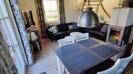 Im Erdgeschoss befinden sich der integrierte Wohnraum- und Küchenbereich, in dem zentral und als kleine Trennung ein Kaminofen platziert ist (neues schwarzes Ledersofa ab 2022). Besonders sind die verfügbaren Bluetooth-Lautsprecher für eine gute Audio-Qualität im Haus - mit einem YAMAHA-Säulenlautsprecher im Wohnzimmer zum angenehmen Musikhören im Haus und einem tragbaren Bluetooth-Lampen-Lautsprecher für den mobilen Einsatz (z.B. auf der abendlichen Terrasse). Dazu noch Internetradio mit DAB und Möglichkeit Podcasts im Haus zu hören. Seit Oktober 2022 DSL-Glasfaseranschluss mit stabilen 100 MBit und hochwertigen FRITZ!-Komponenten. Die Küche ist voll ausgestattet mit Ceranfeld, Kaffeemaschinen (Filterkaffee plus Senseo-Pad-Maschine), Wasserkocher, Geschirrspüler, Kühl-/Gefrierkombination und mit ausreichend und geschmackvoll ausgewähltem Geschirr und Gläsern bestückt. Außerdem befindet sich im Erdgeschoss ein kleines, feines Gäste-WC sowie ein Saunabereich mit Wellnessdusche und Relaxliegen.