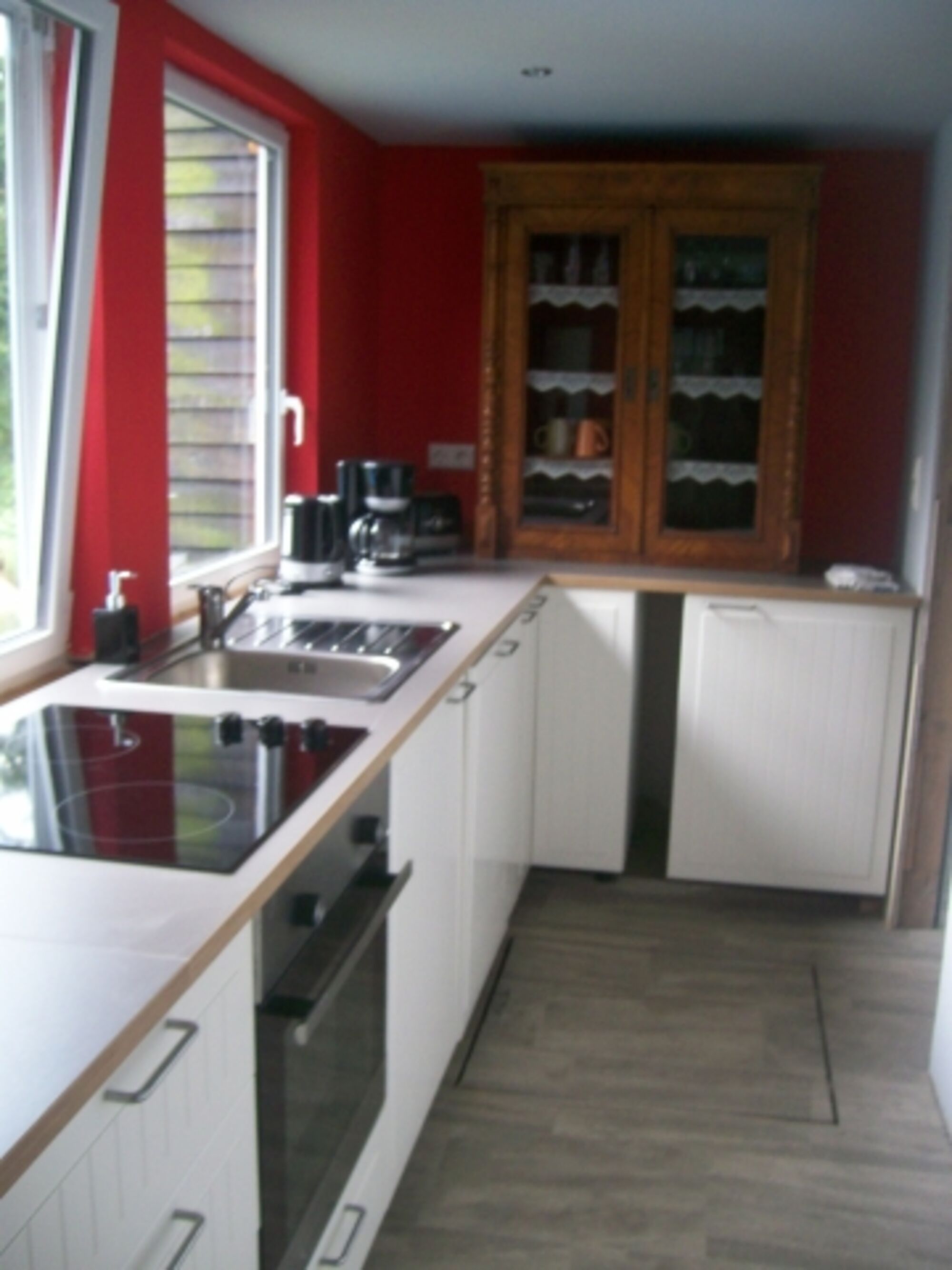 Cerankochfeld, Kühlschrank mit Gefrierfach, Korkenzieher / Flaschenöffner, Geschirrhandtücher