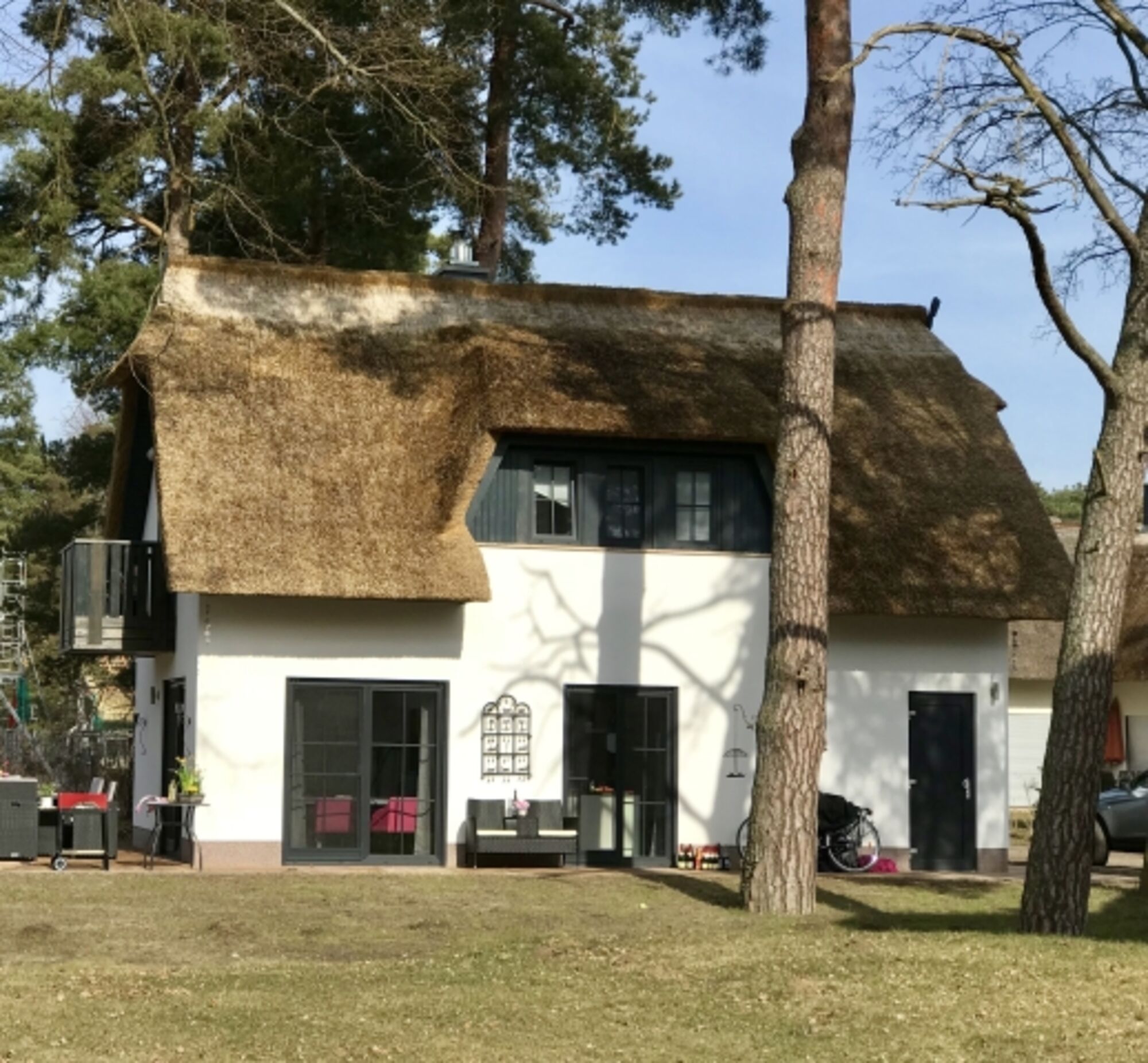Entspannen Sie in einem gepflegten und in behaglichen Farben ausgestatteten Haus. Es ist ideal für 4-5 Personen. Das Reetdachhäuschen ist zu jeder Jahreszeit eine Reise wert: Luxus-Farblicht-Sauna, Wellnessdusche und Kamin bescheren Ihnen gemütliche Tage. Nach dem Saunagang kuscheln Sie sich ein und verweilen auf einem idyllischem Grundstück mit altem Baumbestand.