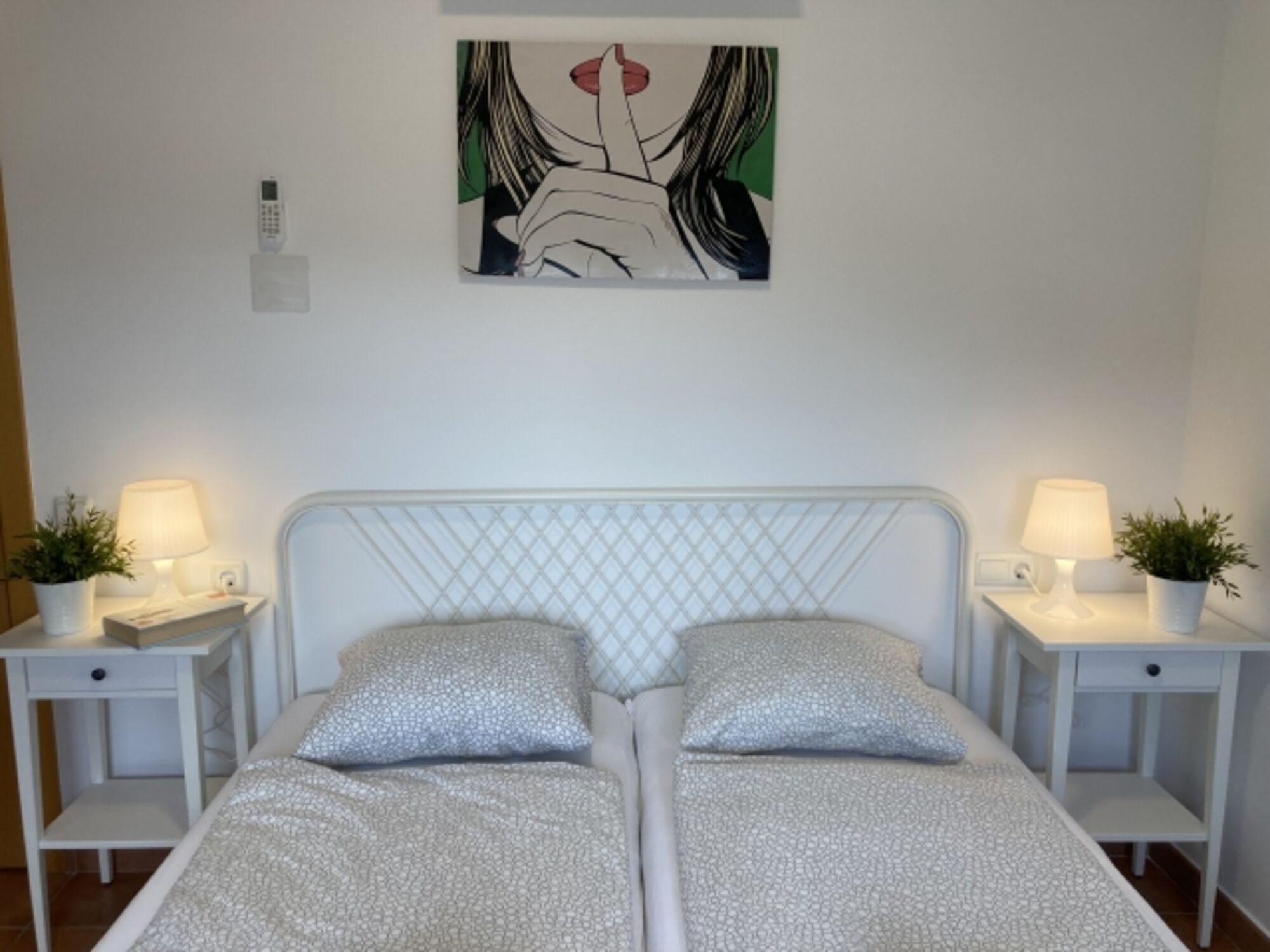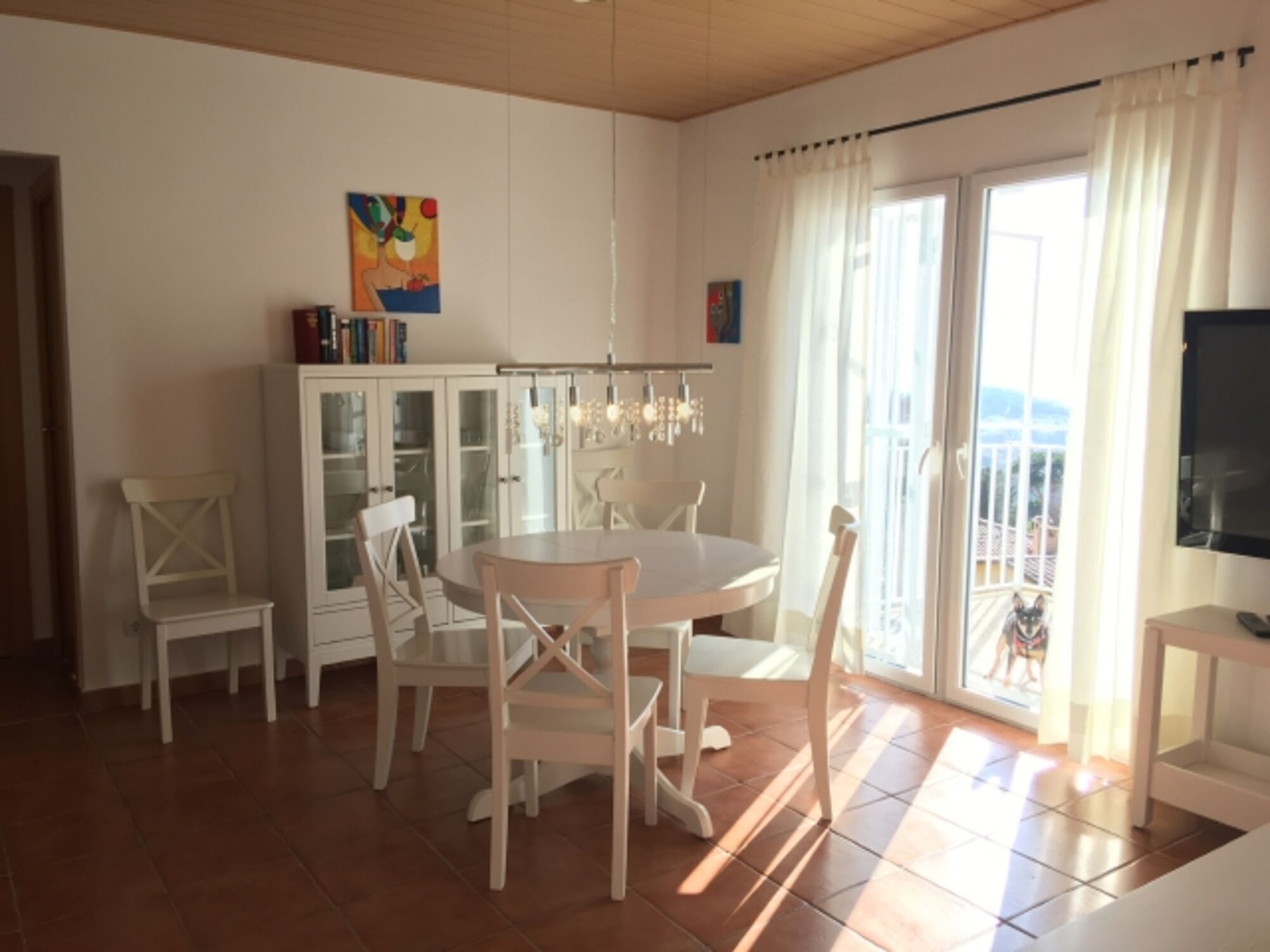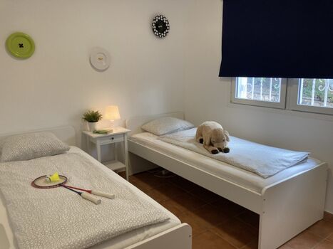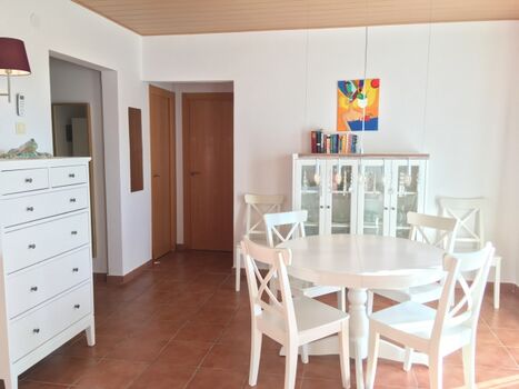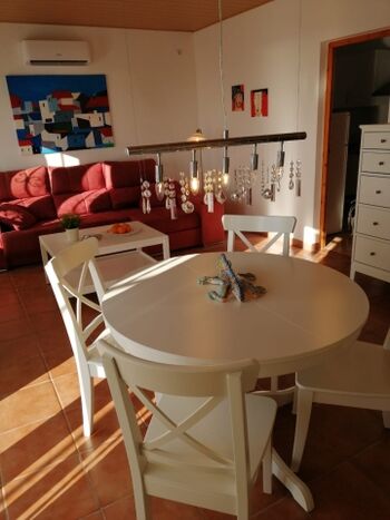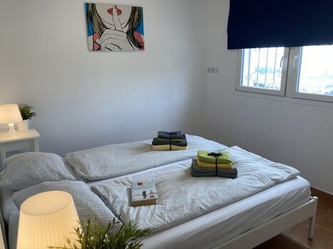 Die renovierte Hauptwohnung unseres „Casa Roca Grossa Blanca“ besteht aus einem geräumigen, 24 m² grossen Wohn-/Esszimmer, 2 Schlafzimmern (Doppelbett, 2 Einzelbetten), Badezimmer mit grosser Dusche (115 x 80 cm), komplett ausgestatteter Küche (Gasherd, Kühl-/Gefrierkombi, Microwelle, Waschmaschine, Geschirrspülmaschine, Senseo-Kaffeemaschine) und Balkon. Eine Frühstücksterrasse mit Morgensonne und gemauertem Grill, für dessen Reinigung wir 35.- € in Rechnung stellen, falls sie das nicht selbst übernehmen möchten, befindet sich vor dem Eingang, Balkon mit Meerblick auf der anderen Seite. Kinderschaukel im Garten. Klimaanlage / Heizung 100.- € pro Woche für das ganze Haus