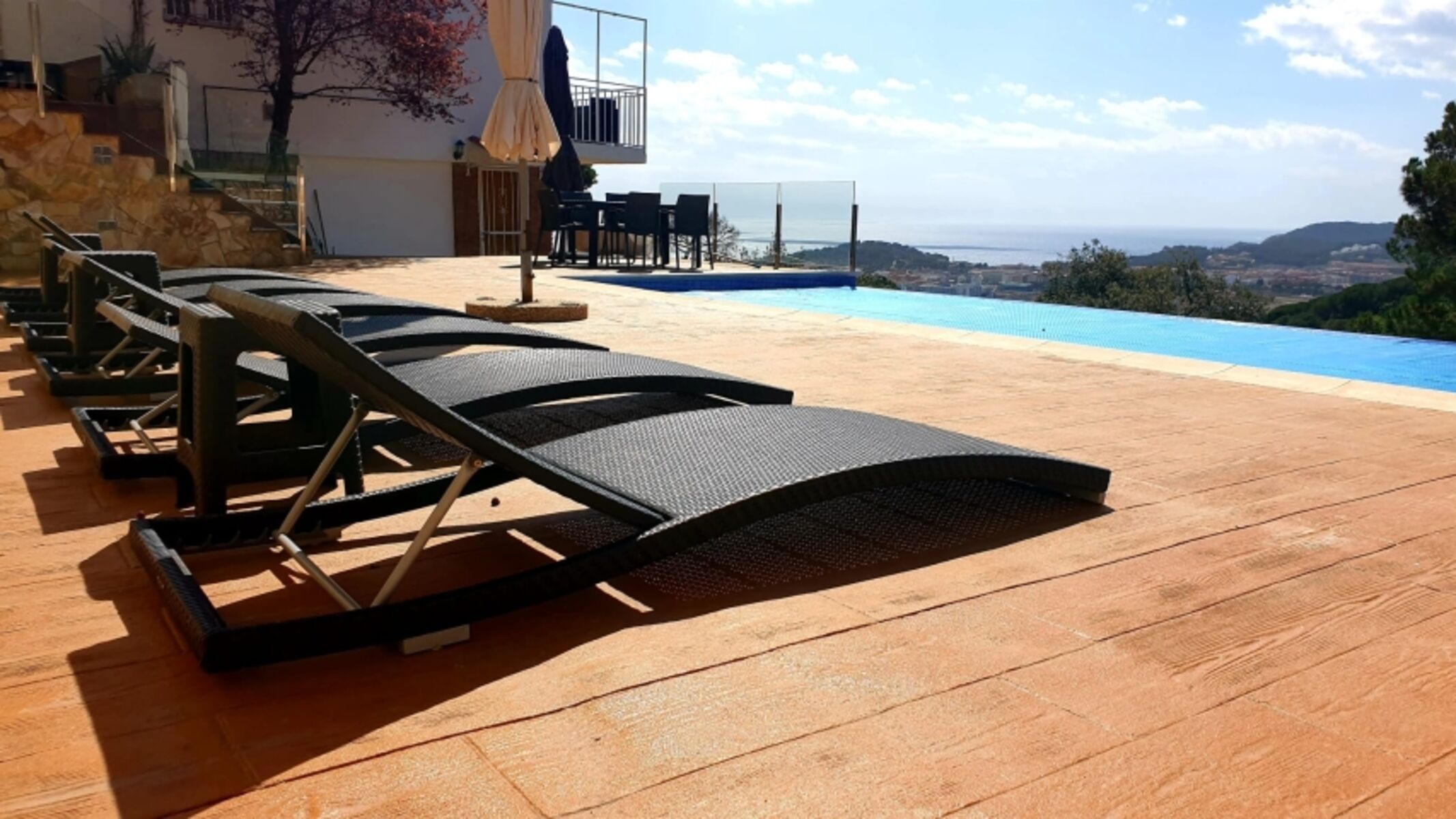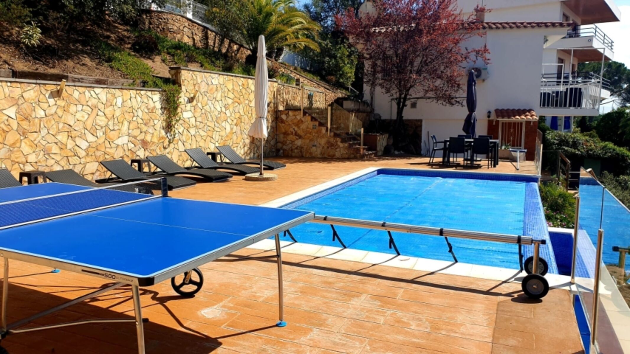 Die Poolterrasse ist mit 6 Liegen ausgestattet und hat einen tollen Panorama-Blick über Lloret aufs Meer. Neu ! Tischtennis Platte