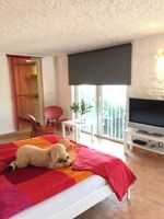Die Suite im Untergeschoss verfügt über einen eigenen Eingang, hat ca. 28 m, mit Doppelbett, Kochecke, Kühlschrank und Duschbad. Sie mieten das gesamte Anwesen, die Suite wird nicht separat vermietet.