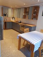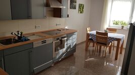 4-Platten Herd, Cerankochfeld, Dunstabzugshaube, Kühlschrank mit Gefrierfach, Korkenzieher / Flaschenöffner, Gewürze (Salz, Pfeffer, Zucker), Öl / Essig, Geschirrhandtücher, Mülltüten, Essplatz in der Küche