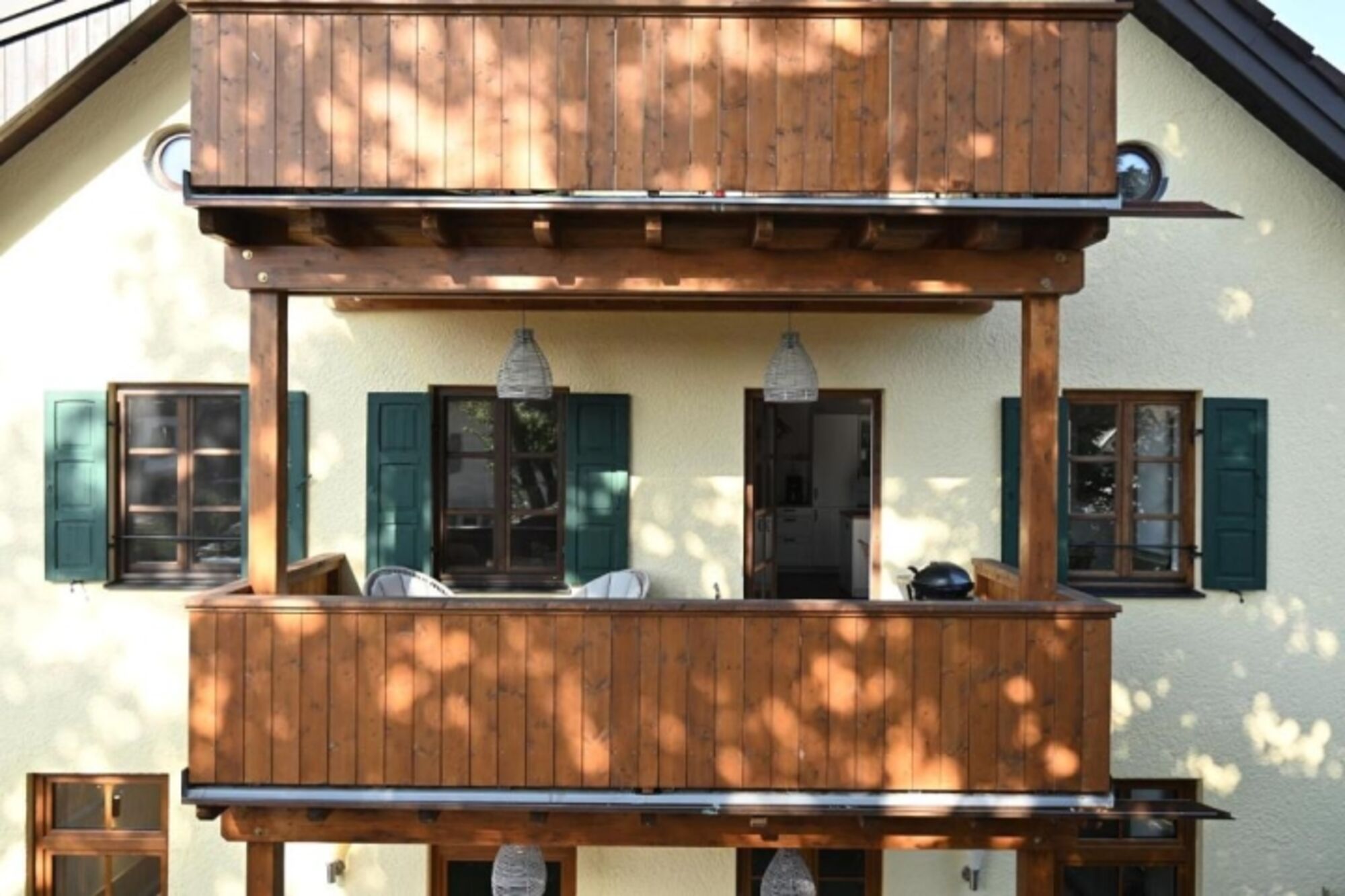 Auf dem Balkon sitzen, die Seele baumeln lassen – und einfach das echte Bayern erleben. Ihr Blick vom großen Balkon schweift über charmante bayerische Landhäuser und – als besonderes Highlight – über drei majestätische Linden, die im Sommer in der großen Mittagszeit Schatten spenden. Ein idealer Ort für den ersten Kaffee am Morgen oder ein Glas Wein zum Sonnenuntergang. Währenddessen döst Ihr Hund zufrieden zu Ihren Füßen – vielleicht nach einem ausgedehnten Spaziergang entlang der zahlreichen Wanderwege direkt ab der Wohnung oder einem gemütlichen schlendern durchs Dorf entlang dem Tiefenbach.