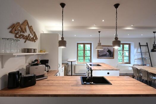 Schon beim Betreten der Wohnung spürt Ihr die besondere Atmosphäre: Helle, hohe Sprossenfenster, warme dimmbaren Deckenstrahler und liebevolle Details verleihen der Wohnung eine behagliche Landhausstimmung. Der offene Wohnbereich mit moderner Kochinsel lädt zu gemeinsamen Kochabenden ein.
