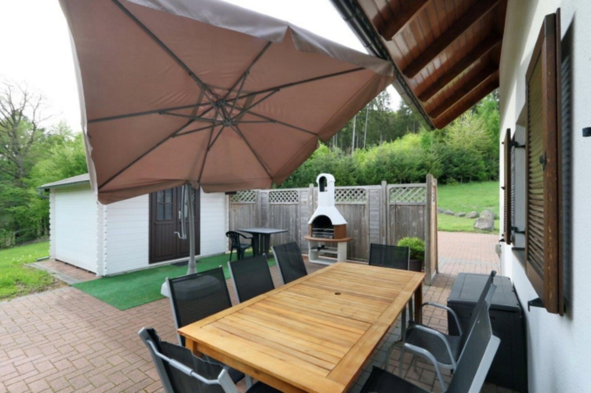 Auf der nicht einsehbaren Terrasse steht Ihnen ein Grillkamin für gemütliche Abende zur Verfügung. Von der Terrasse betreten Sie die Sauna, wo Sie jederzeit ungestört entspannen können.