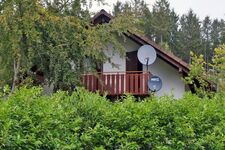 Von dem Balkon aus können Sie die Aussicht in den Wald und die Landschaft vom Hessischen Bergland genießen.