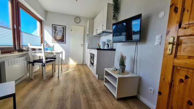 Klein und gemütlich ist unsere frisch renovierte Studiowohnung "Kiekut 1". Mit ihren 20m² ist sie perfekt für Sie allein oder zu zweit, wenn Sie keine großen Platzansprüche haben, jedoch nicht auf Komfort verzichten möchten.