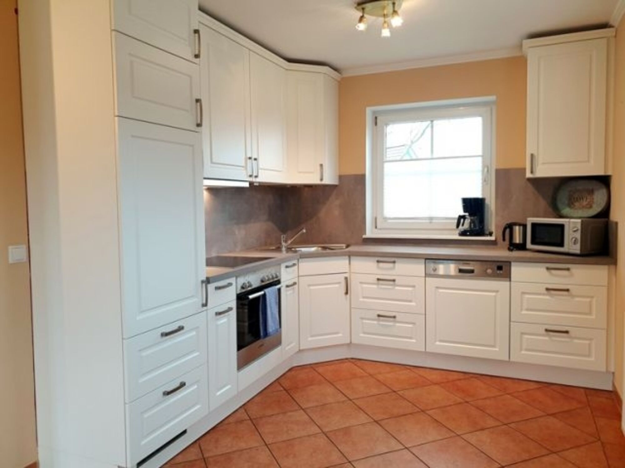 Cerankochfeld, Dunstabzugshaube, Kühlschrank mit Gefrierfach, Korkenzieher / Flaschenöffner, Essplatz in der Küche