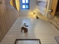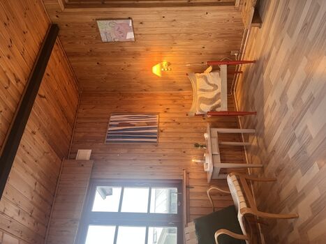 Erdgeschoß: Große Entre, helles Wohnzimmer, schönes Gartenzimmer, Küche, Schlafzimmer mit Doppelbett und Schlafraum mit Kojen. und Hängeboden für 2 Personen
