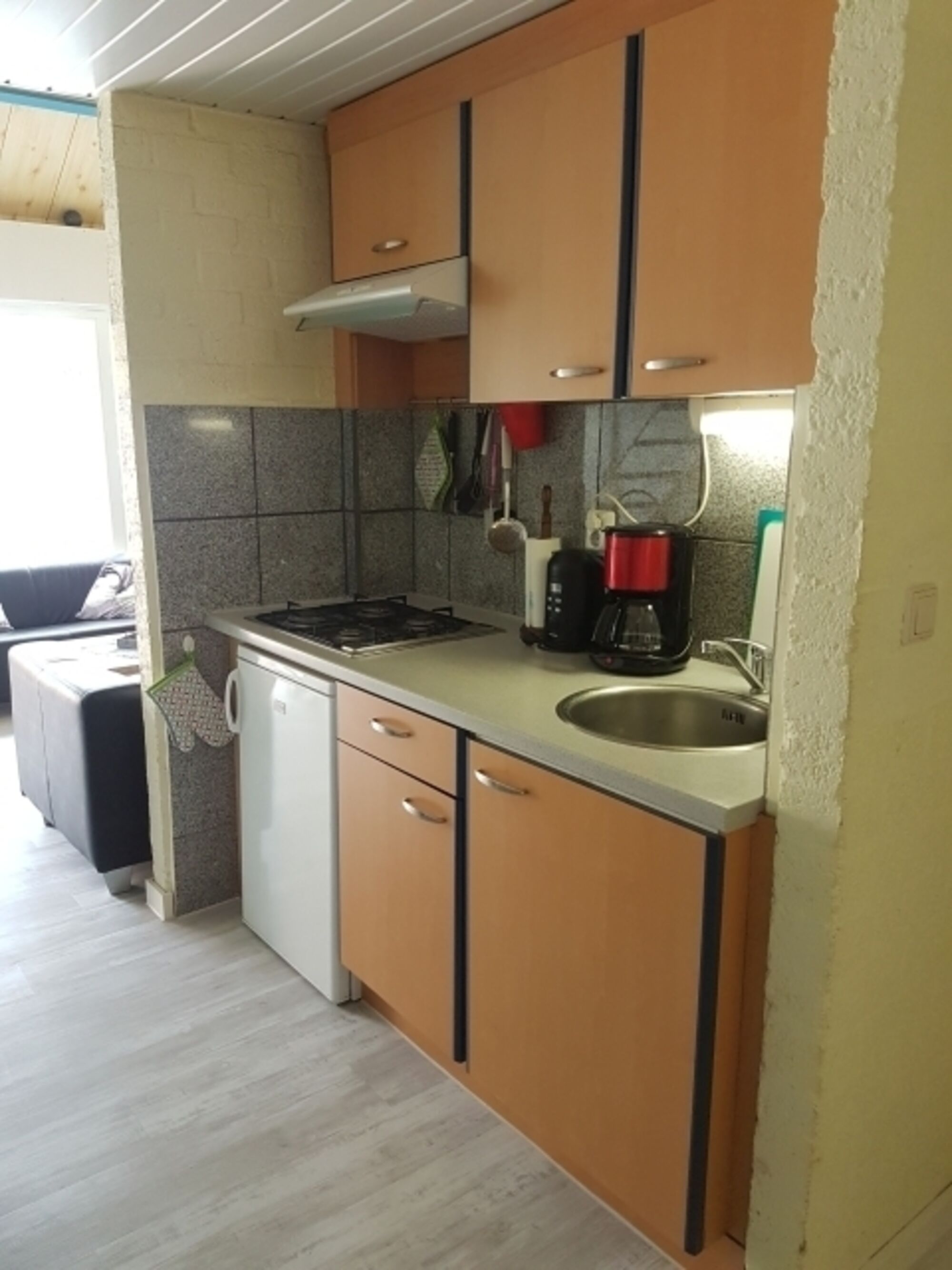 4-Platten Herd, Gasofen / Gasherd, Dunstabzugshaube, Eierkocher, Mixer, Korkenzieher / Flaschenöffner, Gewürze (Salz, Pfeffer, Zucker), Essplatz in der Küche
