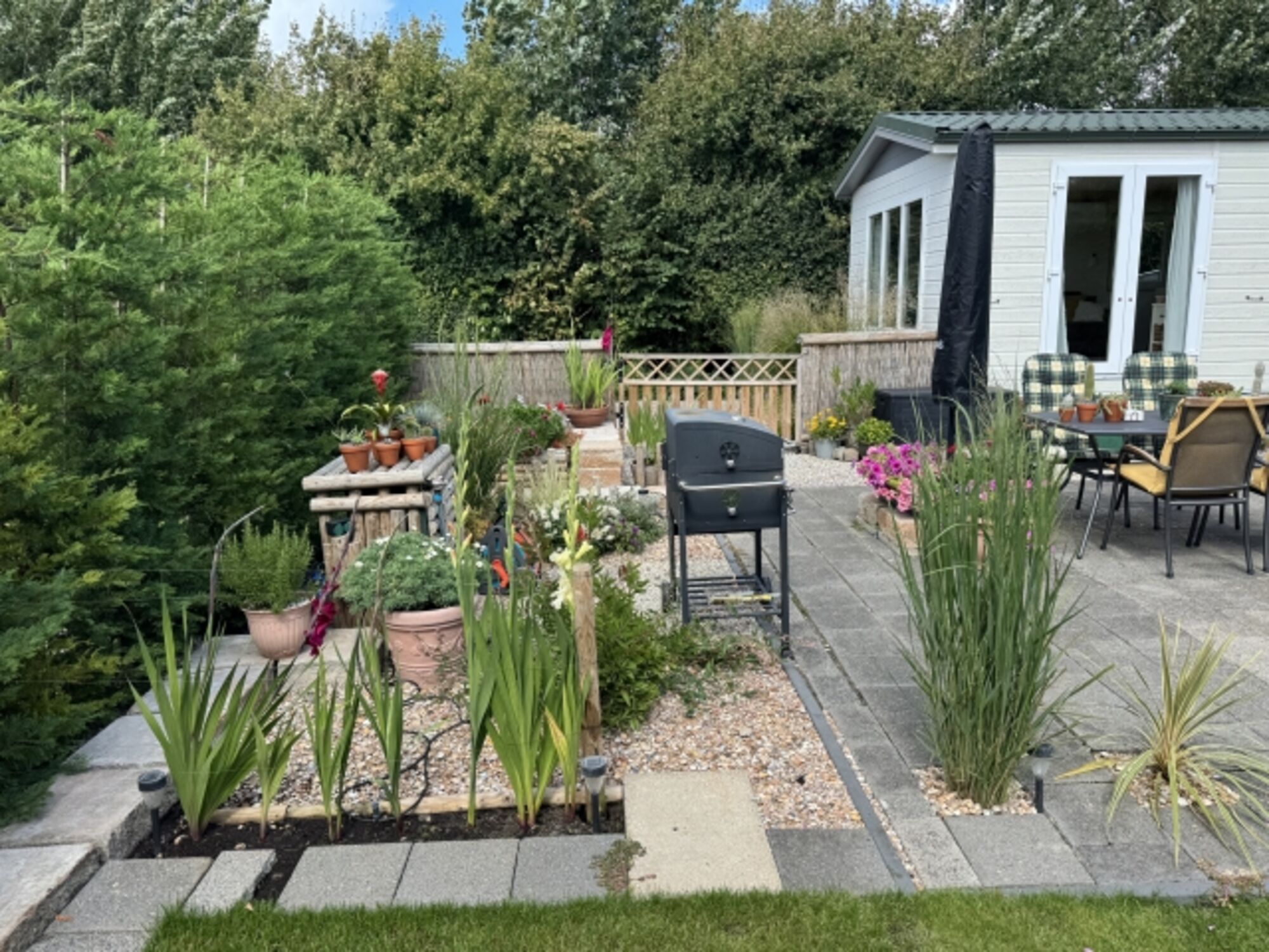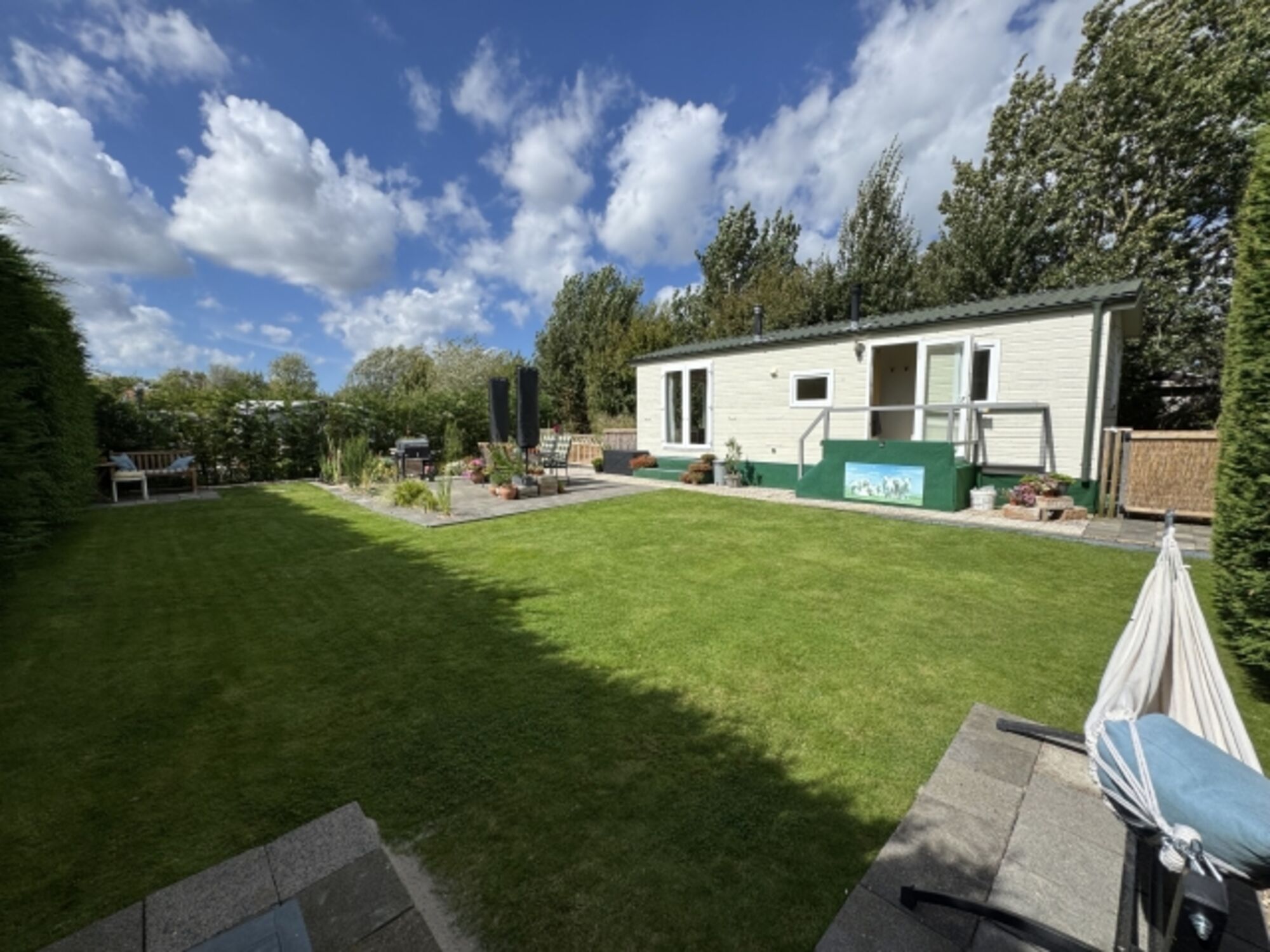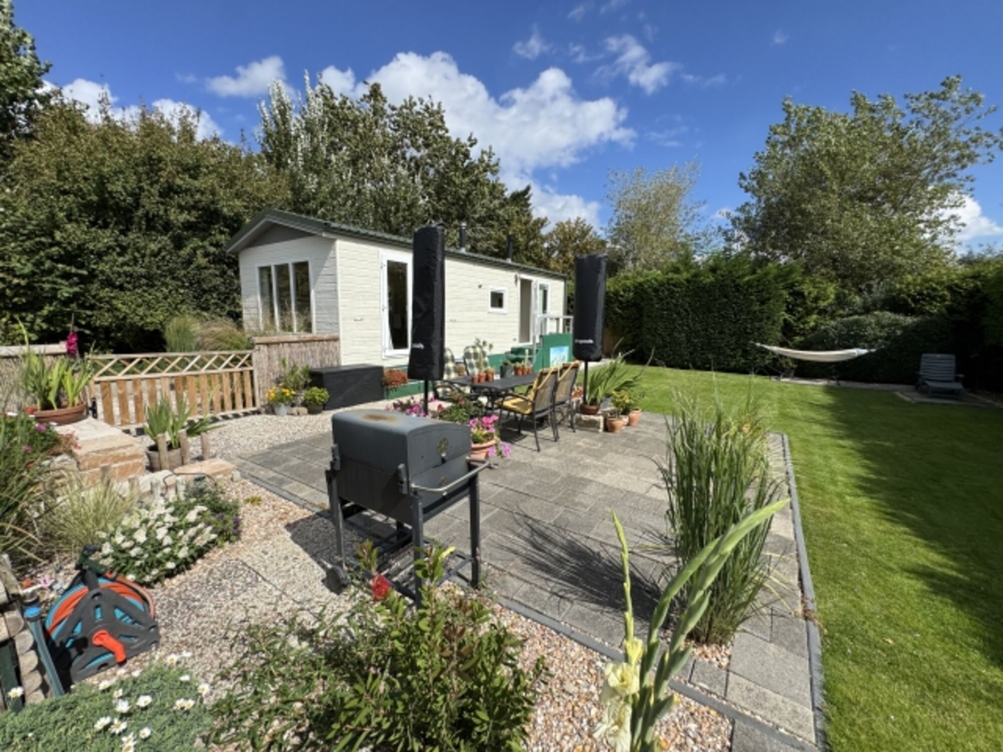 Der großzügige Garten lädt zum Verweilen ein und ist mit bequemen Gartenmöbeln ausgestattet. Hier können Sie auf der Terrasse entspannen oder den Tag mit einem BBQ ausklingen lassen. Ein eigener Parkplatz steht Ihnen zur Verfügung, sodass Sie jederzeit Ausflüge in die umliegende Region unternehmen können.