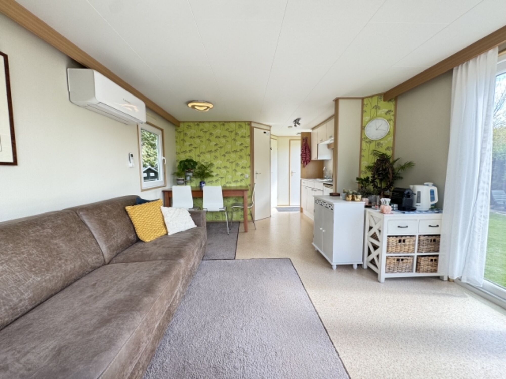 Im Herzen des Chalets befindet sich eine voll ausgestattete Küchenzeile mit Kaffeemaschine, Wasserkocher und allem, was Sie für die Zubereitung kleiner Mahlzeiten benötigen. Die klimatisierten Räume sorgen auch an heißen Tagen für angenehme Kühle, während der kostenfreie WLAN-Zugang und ein Fernseher Unterhaltung bieten.