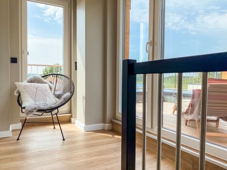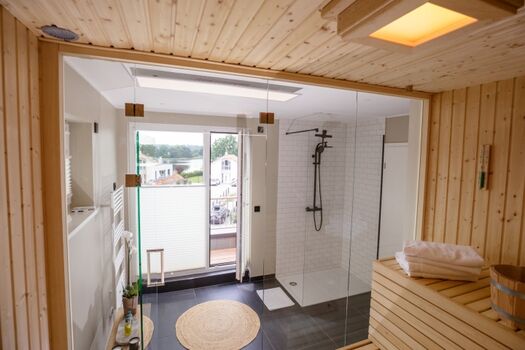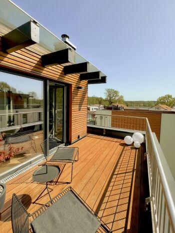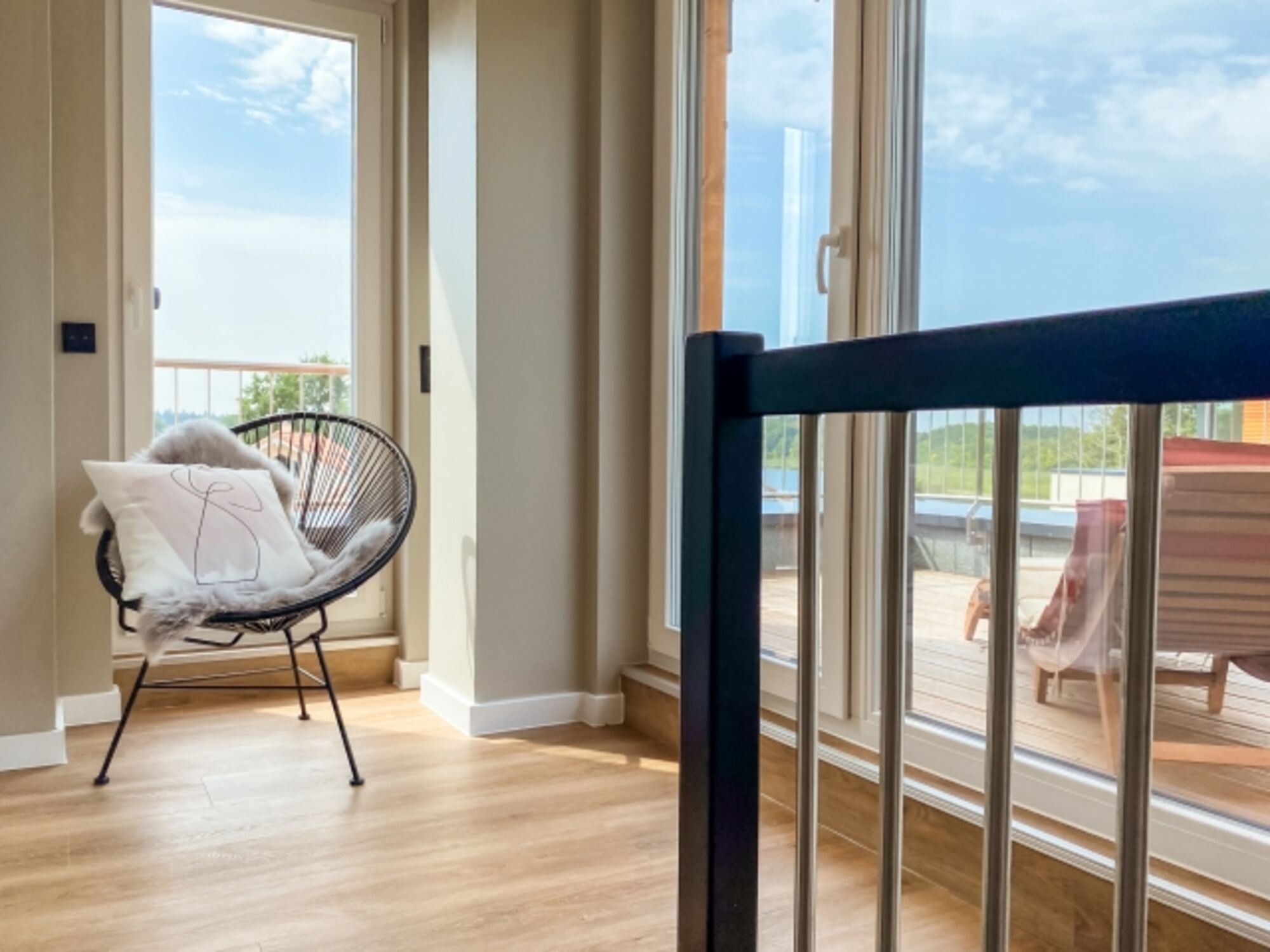 Modernes Ferienhaus mit Sauna, Seeblick, Dachterrasse und Garten