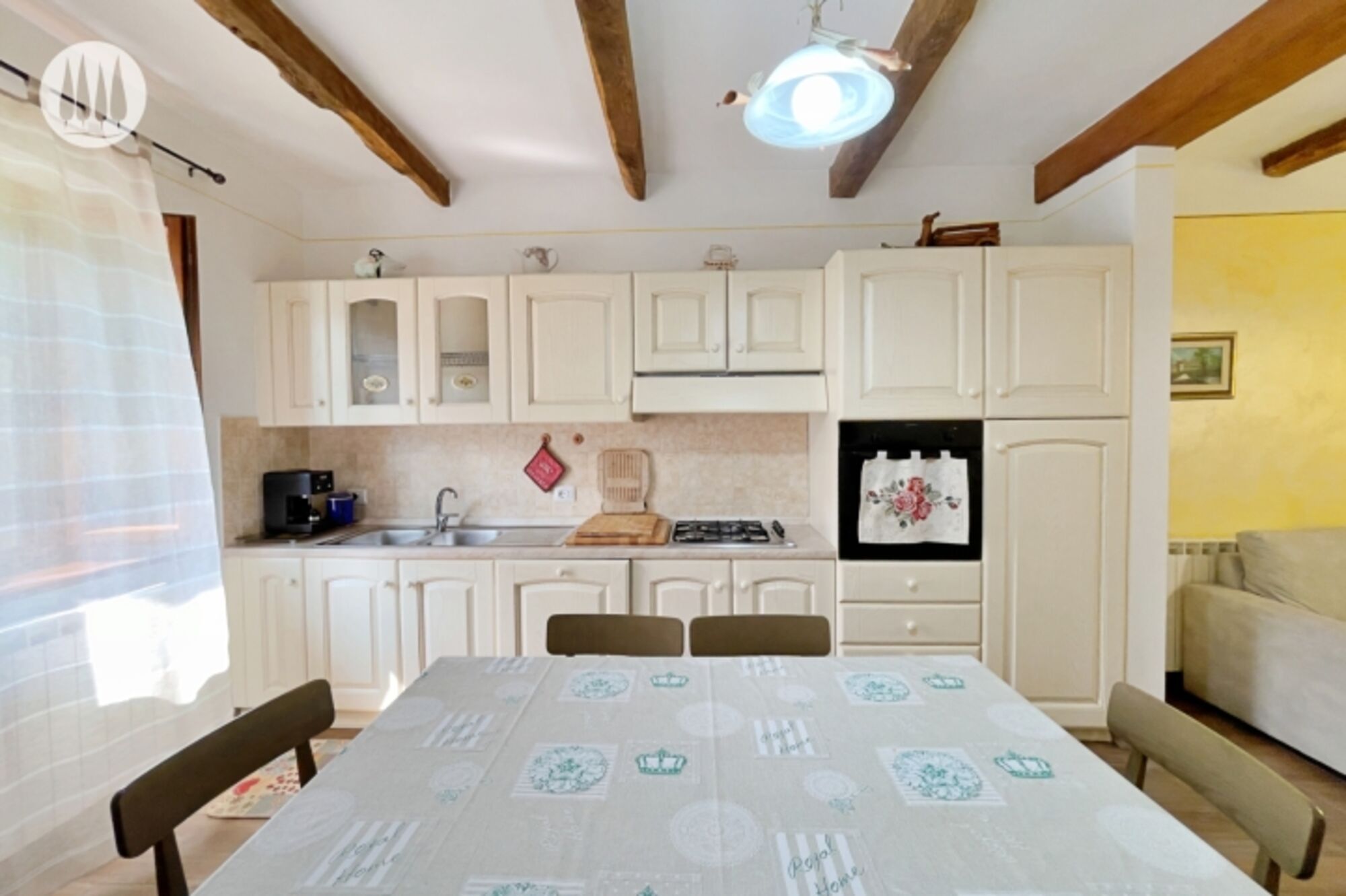 Im hinteren Teil ist die vollausgestattete Küche.