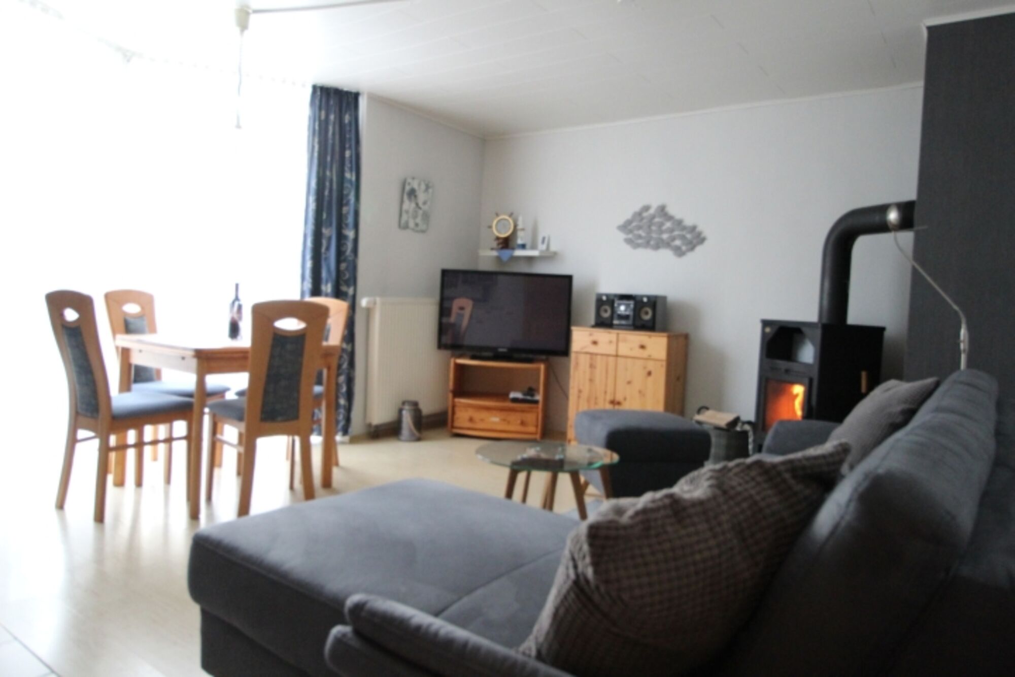 TV, TV-Sat, TV-Flachbildschirm, CD-Player, Bücher, Kaminofen, 3er-Sofa, Sessel