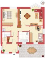 Die Wohnung ist 65 qm groß und wiefolgt aufgeteilt: