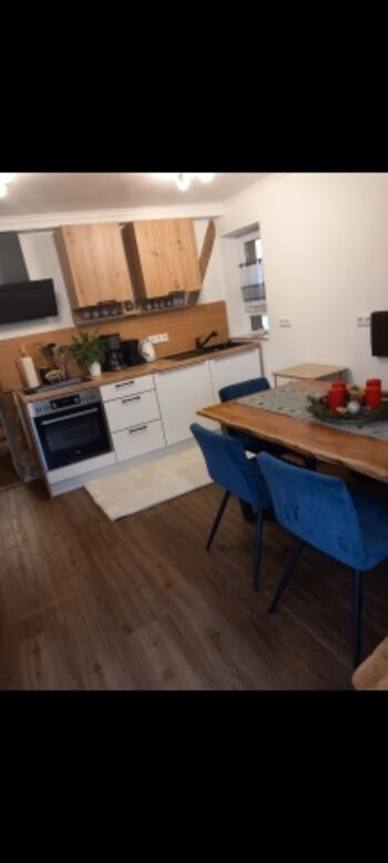 Es erwarten Sie drei Schlafzimmer mit insgesamt 7 Betten, ein gemütlicher Wohn-/ Essbereich mit Einbauküche im Fachwerkstil.