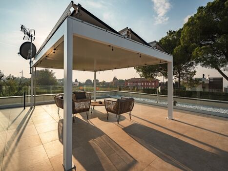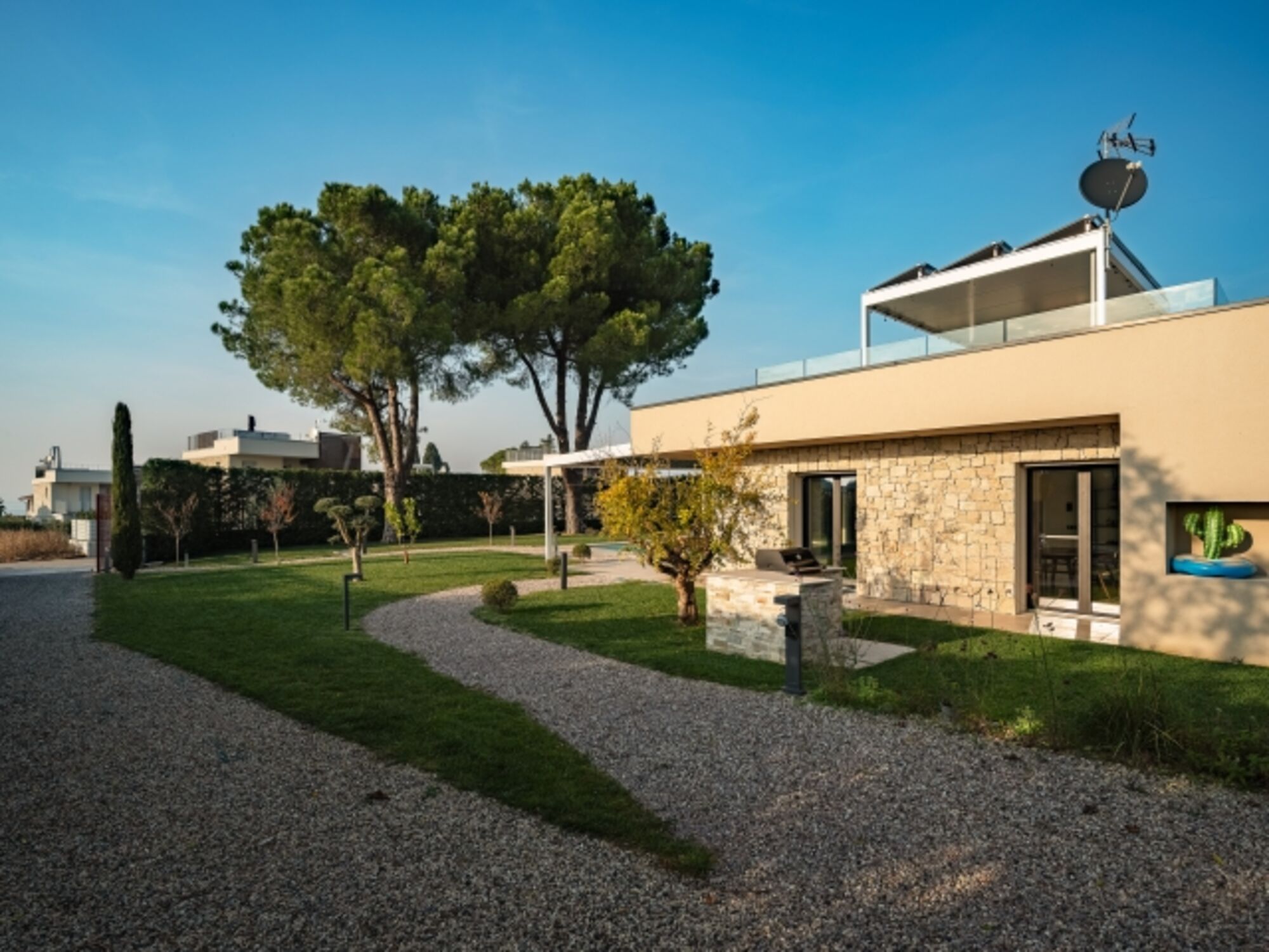 Das Lagolino ist umgeben von 1200 m2 grün, einem privaten Pool, Outdoor Grill und eine Terrasse- Rooftop mit Seeblick.