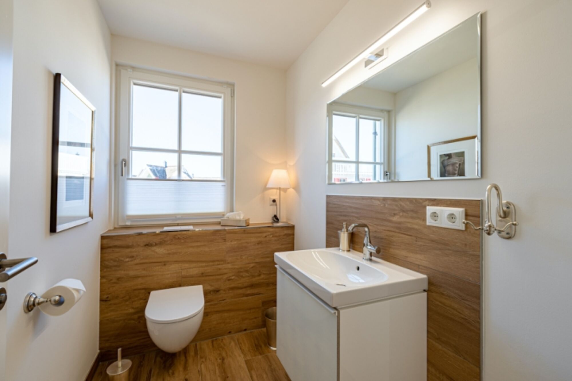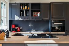 Nichtraucherhaus. Gehobene Ausstattung mit moderner, geschmackvoller Einrichtung, 3 Schlafzimmer, 3 Bäder. Kostenloser Internetzugang (W-Lan), Fußbodenheizung., Kamin. Waschmaschine, Garten- und Dachterrasse mit Sitzmöbeln und Strandkorb, Gasgrill, 2 Pkw-Stellplätze am Haus. 6 Personenbelegung. Verschaffen Sie sich einen Überblick mit einem 360° Rundgang. Einfach den folgenden Link kopieren: