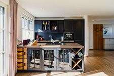 Cerankochfeld, Dunstabzugshaube, Kühlschrank mit Gefrierfach, Korkenzieher / Flaschenöffner, TV in der Küche