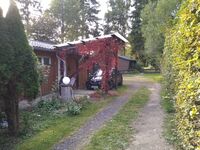 Das Häuschen hat ein Ankleidezimmer mit Kleiderschrank Doppelbett 1,80 x 2,00m, Leselampe am Bett