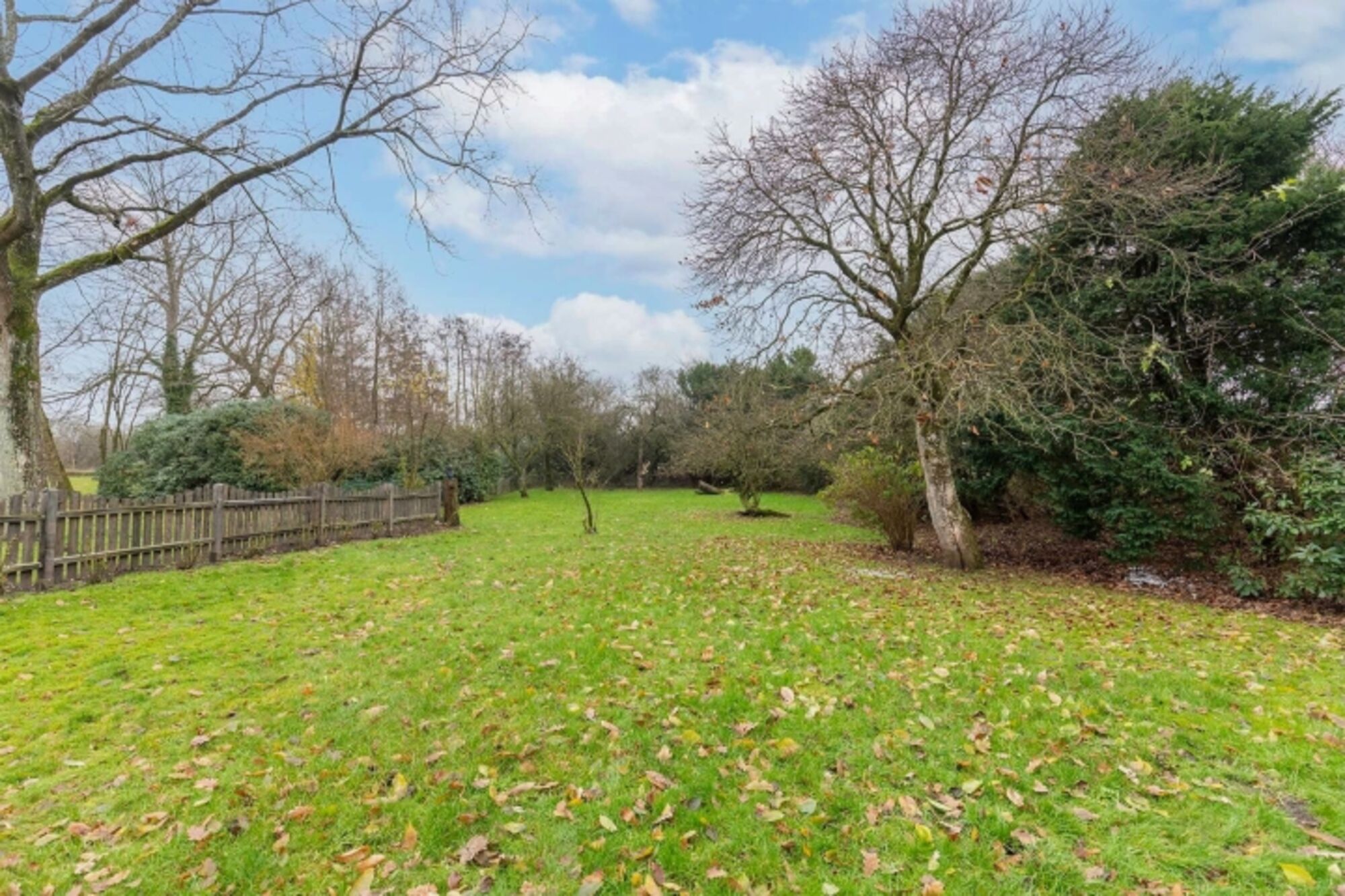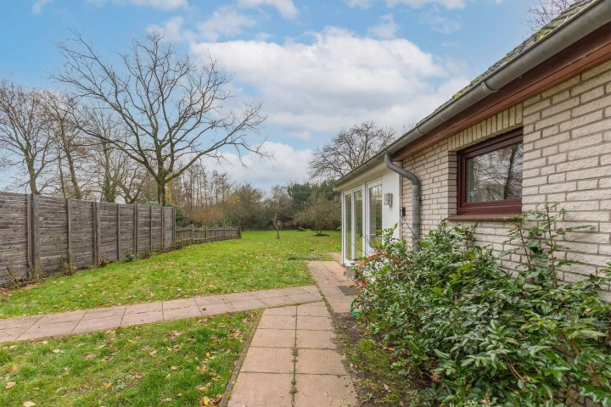 In dem großzügigen, eingezäunten und naturbelassenen Garten können Sie auf der windgeschützten Terrasse den Tag auf Gartenstühlen ausklingen lassen.