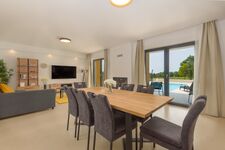 Die Villa ist ein ausgezeichneter Ausgangspunkt für einen aktiven Urlaub, da fast alle istrischen Strände in nur 20 Minuten erreichbar sind. Der Außenbereich umfasst einen wunderschönen Pool mit modernen Liegestühlen, während das Innere hell und stilvoll eingerichtet ist und ein wohnliches Gefühl vermittelt.