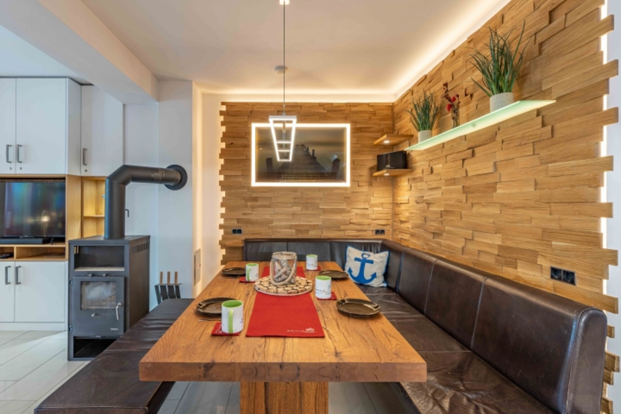 Auch im Herbst und Winter lädt das Strandhaus Sie ein. Genießen Sie die Ruhe am Strand bei langen Spaziergängen beispielsweise zum Fliemsdorfer Huk. Anschließend kann man es sich vor dem Kamin mit einem Glas Rotwein gemütlich machen.