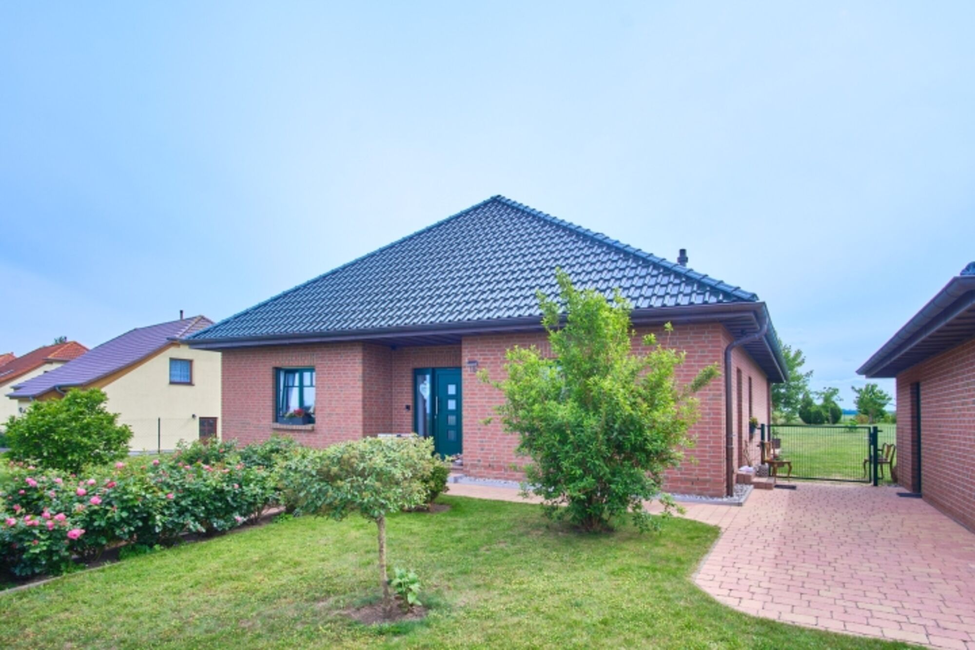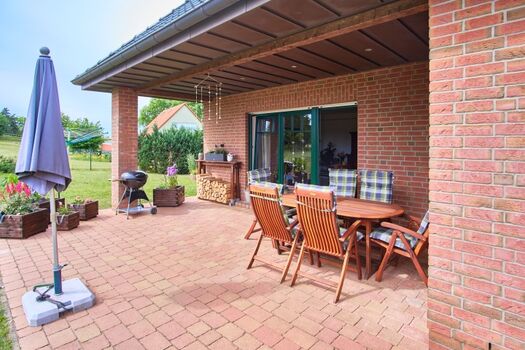 Das im Jahre 2007 erbaute, ebenerdige Ferienhaus verfügt über 1 Wohnraum mit Kamin, 1 Esszimmer, 1 Einbauküche, 2 separate Schlafräume, 1 Bad, 1 Gäste-WC, 1 überdachte Terrasse, einen ca. 1.500 m² großen, komplett eingezäunten Garten sowie eine Garage und PKW-Abstellplätze.