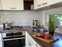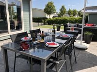 Unser Chalet ist eingezäunt, bietet 2 Schlafzimmer, einen wunderschönen Wohn-/Essbereich mit Klimaanlage und eine gut ausgestattete Küche (u.a. Spülmaschine, Gasherd, Backofen, Mikrowelle, Filterkaffee- und Senseomaschine usw.), eine große Sonnenterrasse, und, und, und - ideal für eine Familie mit bis zu 2 Kindern.