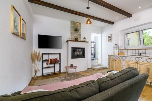 Im Erdgeschoss des Hauses befinden sich zwei komfortable Schlafzimmer, jeweils mit eigenem Bad, sowie eine zusätzliche Toilette. Das Wohnzimmer und die Küche sind vollständig ausgestattet für einen angenehmen und sorgenfreien Aufenthalt.