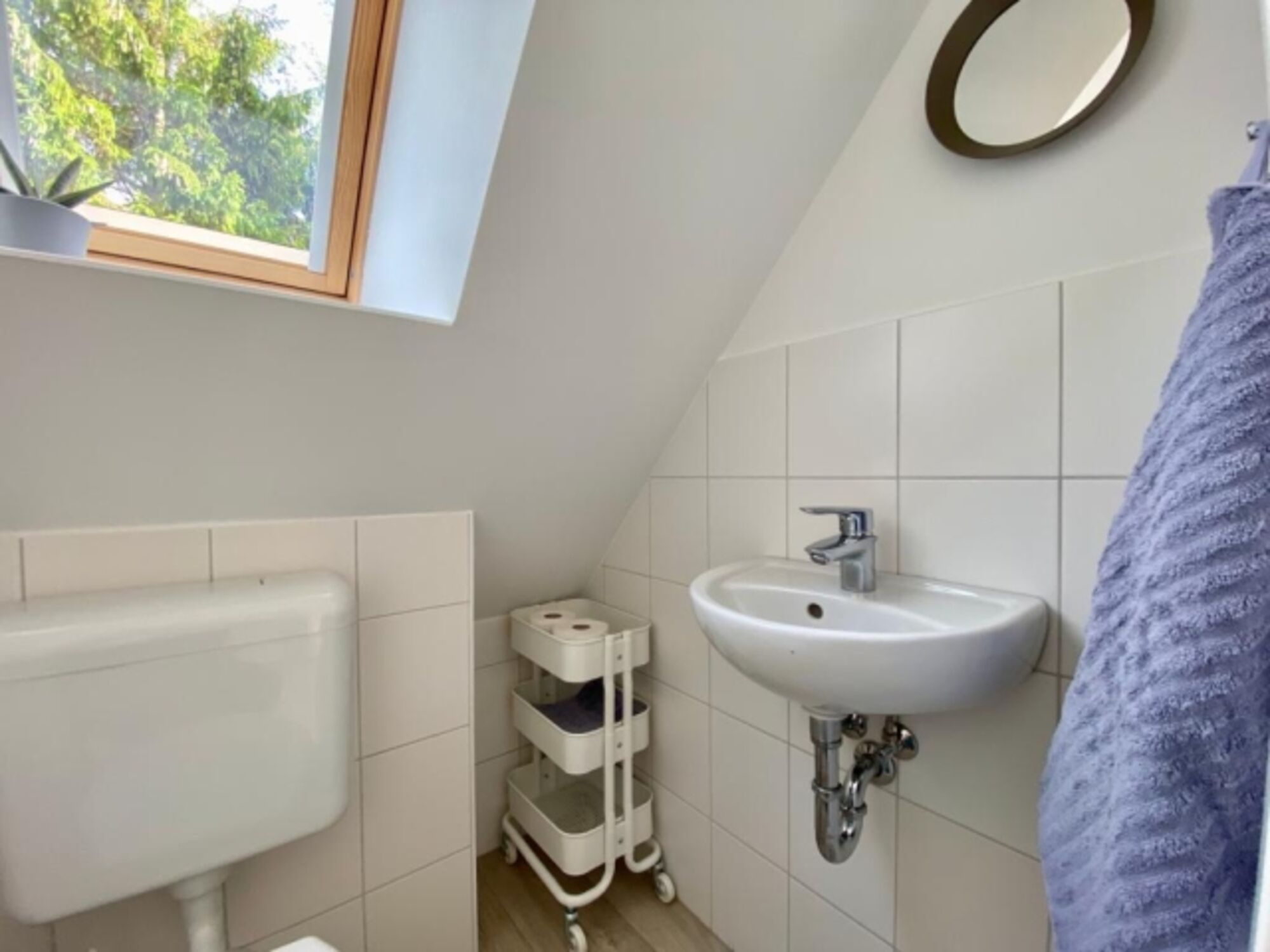 Im Obergeschoss des Hauses befindet sich ein kleines Gäste-WC, sowie die beiden Schlafzimmer mit Doppelbett und zwei Einzelbetten.