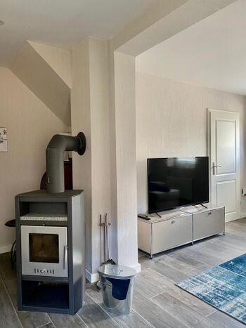 Das große Wohnzimmer lädt zu entspannten Stunden vor dem knisternden Feuer des Kaminofens ein und in der gemütlichen Küche lassen sich so manche gesellige Urlaubsabende beim gemeinsamen Kochen und schnacken verbringen. Das moderne Duschbad schafft Wohlfühlatmosphäre.
