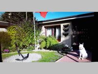 Eine kleine Terrasse mit Gartenmöbeln steht Ihnen zur Verfügung . Ein Grill ist auch vorhanden. Ich empfehle 1 mittel grossen Hund ,oder mit Absprache zwei kleinere Hunde. Die Terrasse ist eingezäunt.
